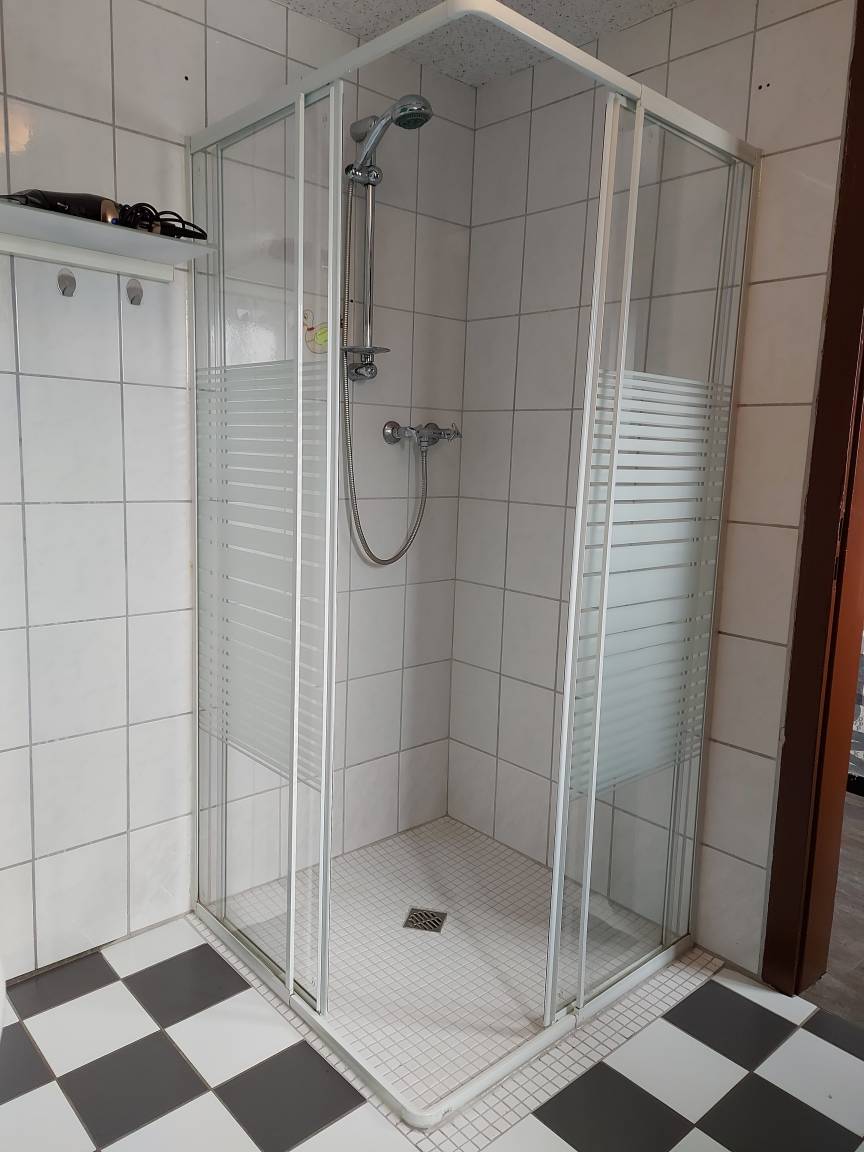sowie mit einem Gefrierschrank/Kühlschrank. Das Tageslichtbad ist mit einer ebenerdigen Dusche,
