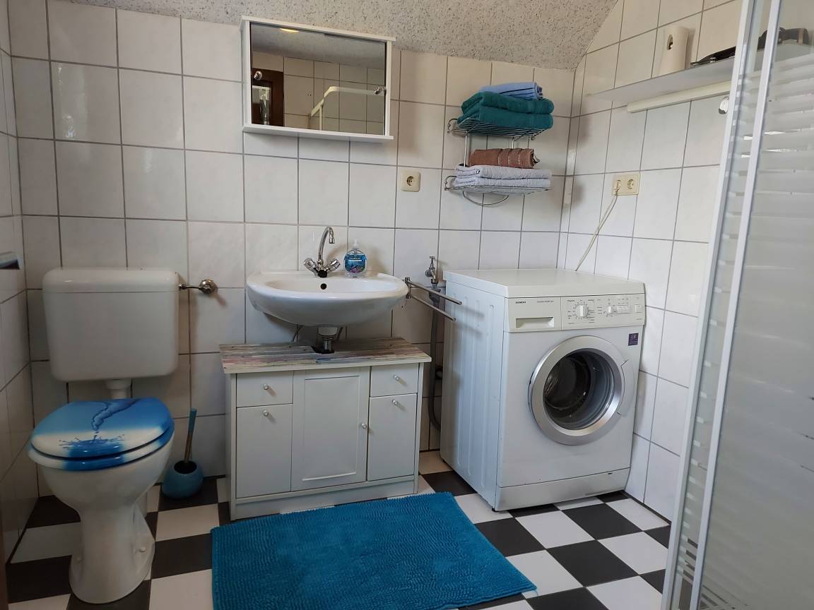 einem WC und einer Waschmaschine (gegen eine kleine Gebühr)eingerichtet.