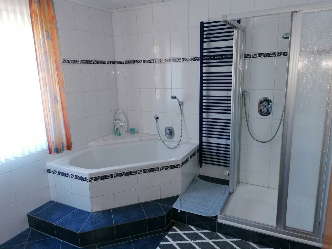 Das hochwertige Bad ist ausgestattet mit Badewanne, Dusche und WC.