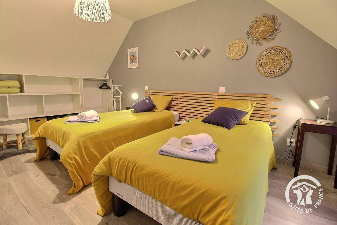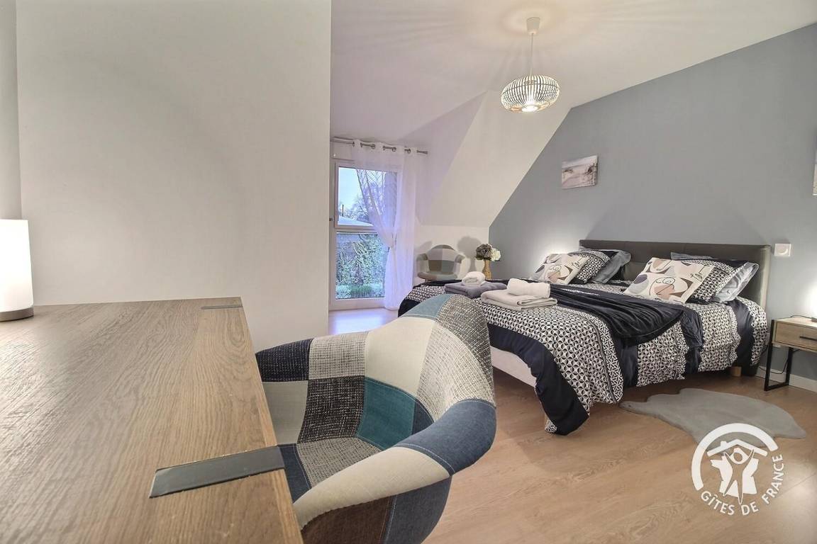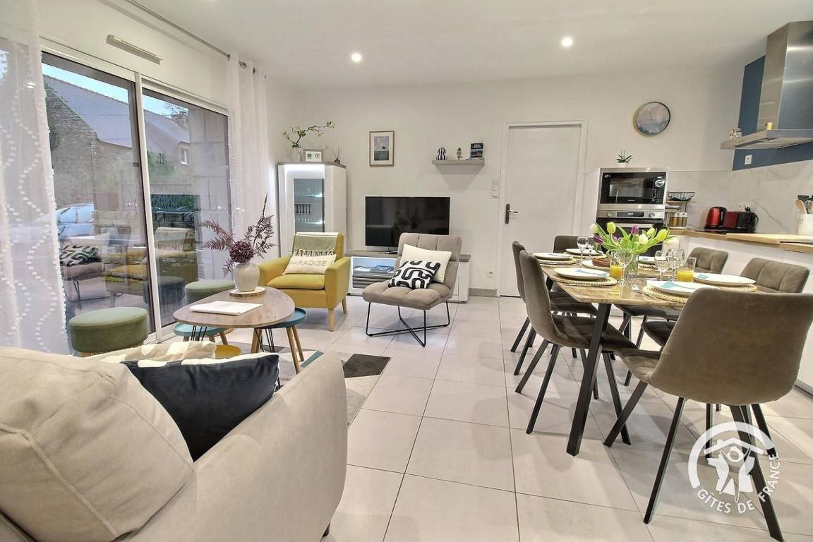 „Gîte très agréable, beau et accueillant au calme idéalement situé à 20 minutes de nombreux points d'intérêts (plages, château, jolis petits villages, etc...). Literie très CONFORTABLE et douche italienne bien grande, terrasse et petit jardin fleuri très plaisants. Les jeux de sociétés, baby-foot et fléchettes sont un beau petit plus. les propriétaires vous accueilleront chaleureusement et vous renseigneront si vous avez des questions... Merci pour votre gentillesse et générosité. On espère revenir chez vous où il fait bon de séjourner.“