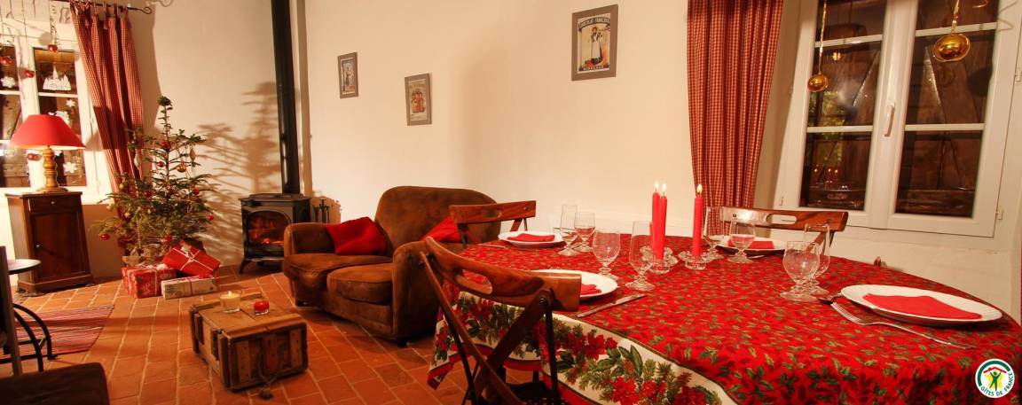 „Gîte super équipé (comme à la maison !) et propriétaires sympas et à l'écoute. Même le sapin de noël était fourni à côté du poêle (douce chaleur du feu de bois). Jolies promenades à faire dans les parages, au départ du gîte. Prévoir des carottes pour les 3 ânesses, elles adorent ça et en réclament !“