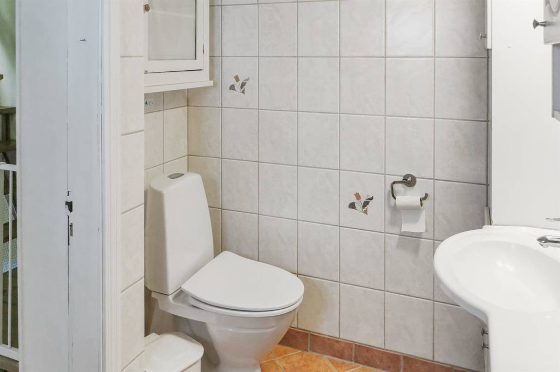 Die Einrichtung des Hauses besteht aus zwei Wohnzimmern, die nicht ganz voneinander getrennt sind, sondern so angeordnet sind, daß man in einem Teil zu Mittag essen und sich im anderen Teil entspannen oder fernsehen kann. Die Küche ist geräumig und neueren Datums, so daß alles bestens funktioniert und sogar ausreichend Platz zum Kochen vorhanden ist. Das Haus erstreckt sich über zwei Etagen mit zwei Schlafzimmern im ersten Stock und einem Schlafzimmer im Erdgeschoss. Da das Haus in einer anderen Zeit erbaut wurde, beträgt die Deckenhöhe unter den Balken an einigen Stellen nur 180 cm.