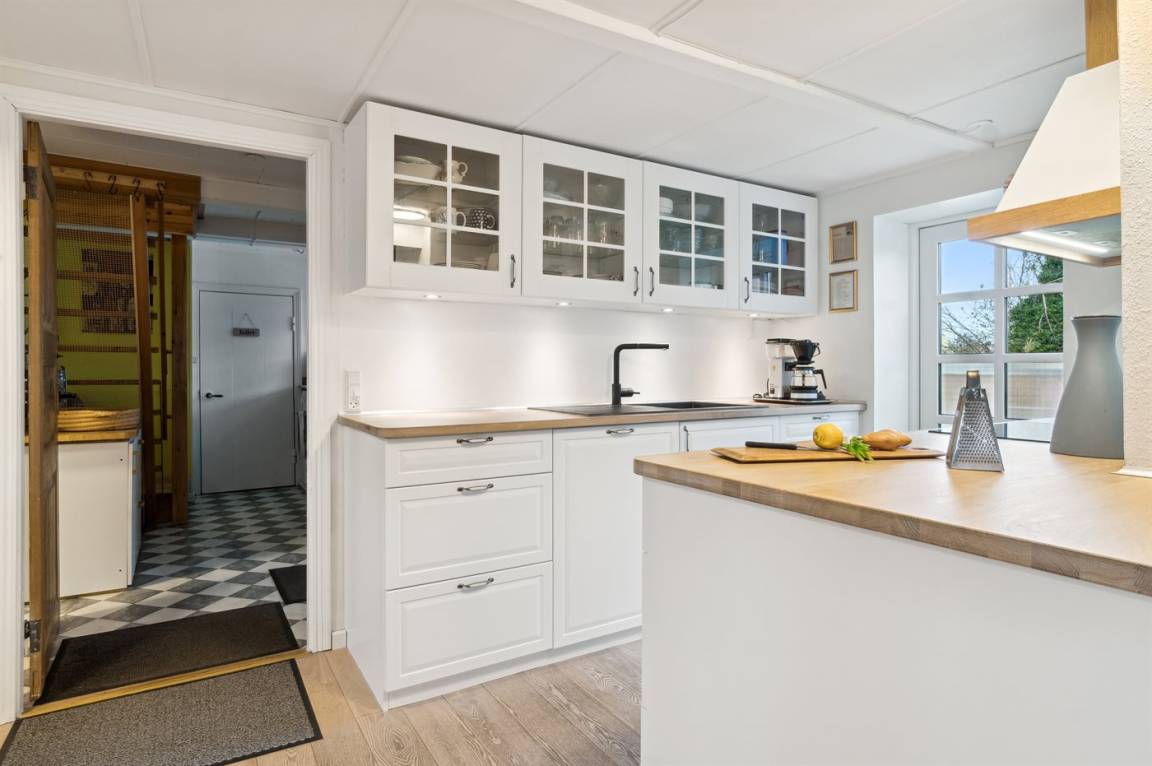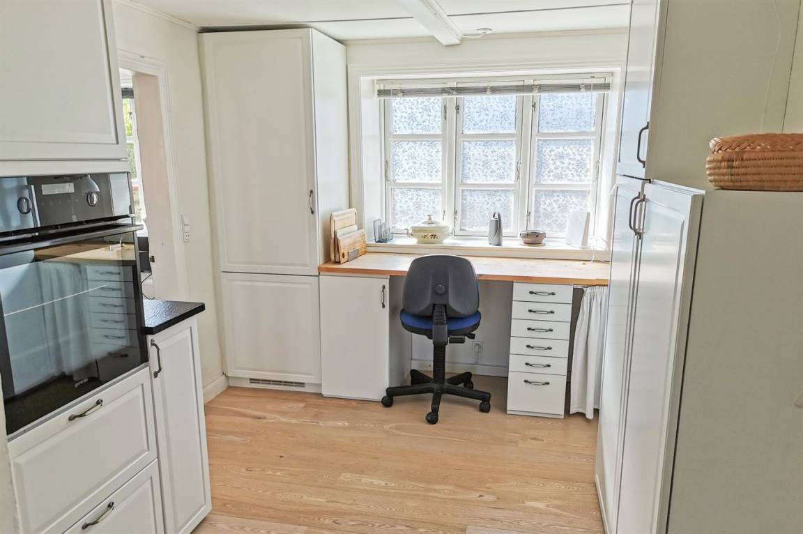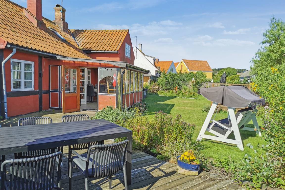 Zur Küste hin, in einer der kleinen Gassen des ehemaligen Fischerdorfes Årsdale, liegt dieses Fachwerkhaus, umgeben von einem herrlich ungestörten Grundstück mit einem einladenden Wintergarten und einer Holzterrasse im gepflegten und gemütlichen Garten. Durch die Fenster kann man die Veränderungen des Meeres beobachten und bei passendem Wetter einen Kaffee im Freien genießen. Der Garten verfügt über abgeschirmte und ungestörte Bereiche, wenn die Sonne einfach in Ruhe genossen werden soll.