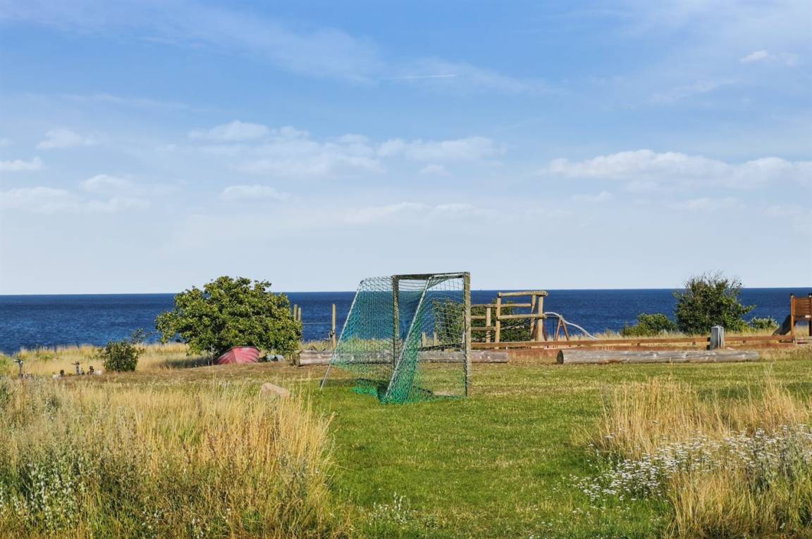 Im großen Gemeinschaftsbereich unterhalb des Hauses findet man sowohl einen Spielplatz für Kleinkinder als auch gute Bademöglichkeiten in den Felsen und eine Reihe von Boulebahnen. Der kleine Hafen ist im Sommer voller Leben - Mikkellers Burgerbar, Gorms Pizza und sogar eine kleine Sommerbar haben ihren Weg in das Hafengebiet gefunden, das auch eine Sauna bietet.