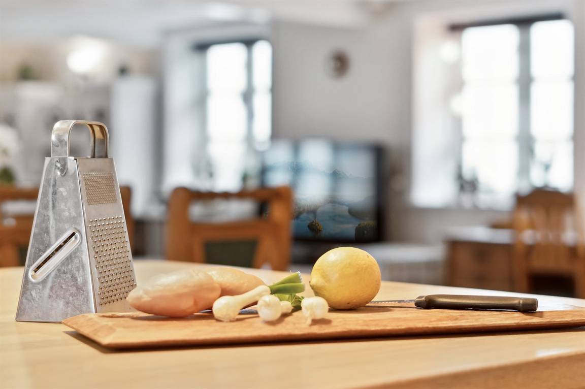KücheDie Küche ist mit Kühlschrank ausgestattet. Außerdem gibt es 4 Induktions-Kochzonen, Umluftofen, Mikrowelle sowie Geschirrspüler.