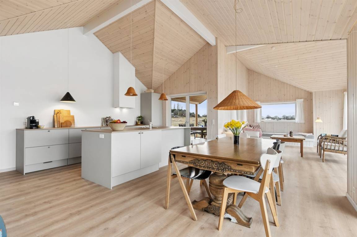 Das Ferienhaus ist großzügig gestaltet und bietet neben einem großen, hellen Wohnzimmer mit Panoramafenstern auch eine Wohnküche, in der Urlaubsmahlzeiten in gemütlicher Atmosphäre leicht zubereitet und eingenommen werden können. Vier Schlafzimmer und zwei schöne Badezimmer bieten ausreichend Platz für 8 Personen.