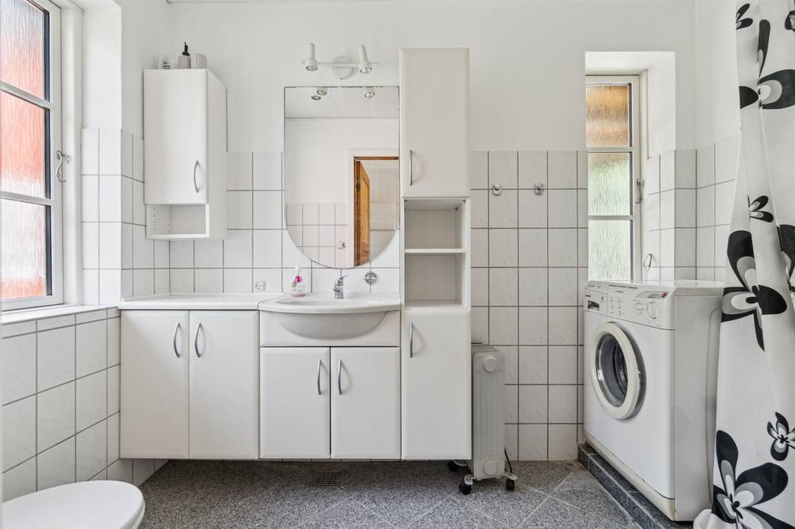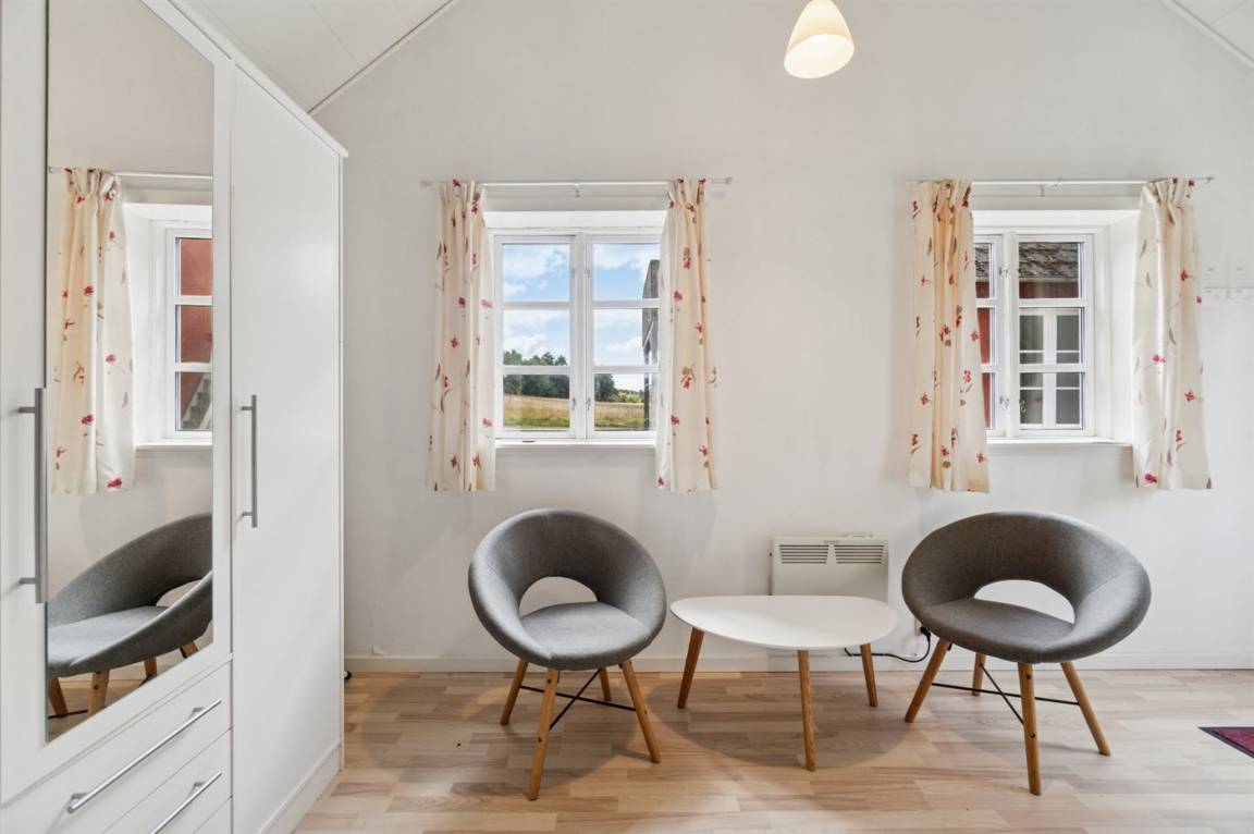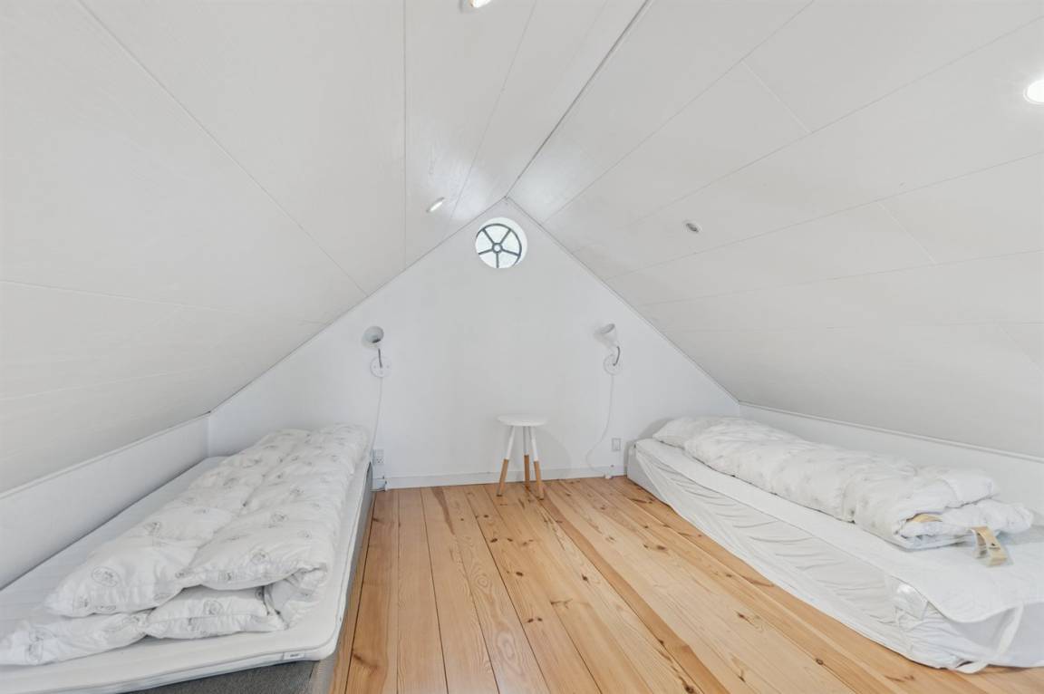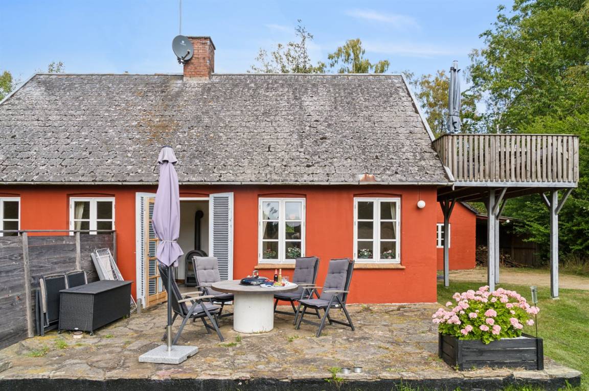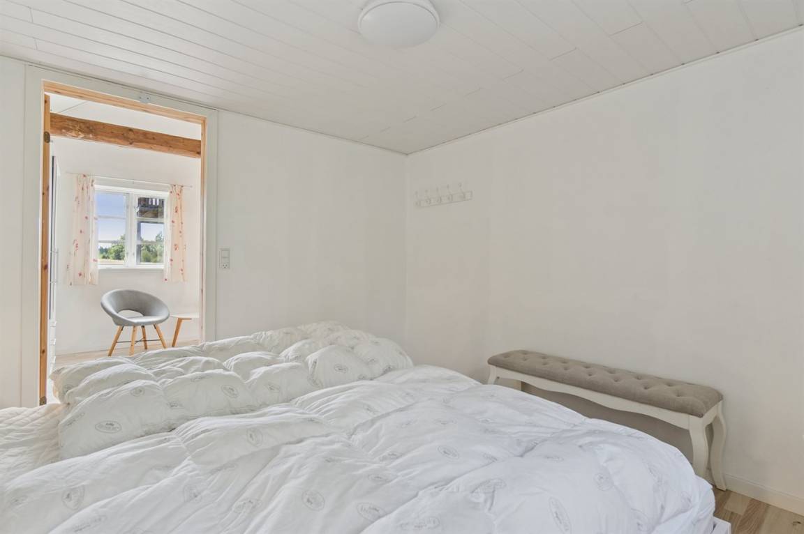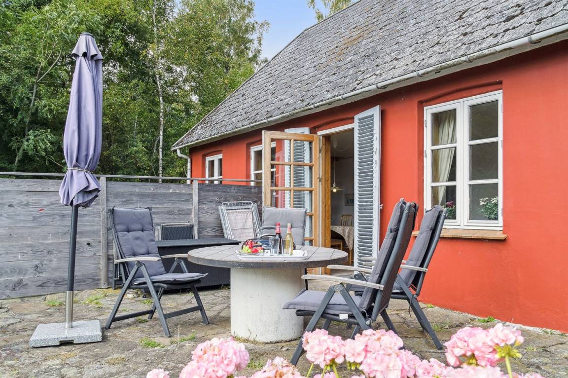 Das Haus erstreckt sich über zwei Etagen, und im Gästehaus auf der anderen Seite des Hofes befindet sich ein neuer Schlafbereich. Wenn ihr Ruhe und Erholung sucht, dann ist dieses Haus genau das Richtige – abgeschieden, und dennoch nicht weit von Årsdale oder Svaneke entfernt.