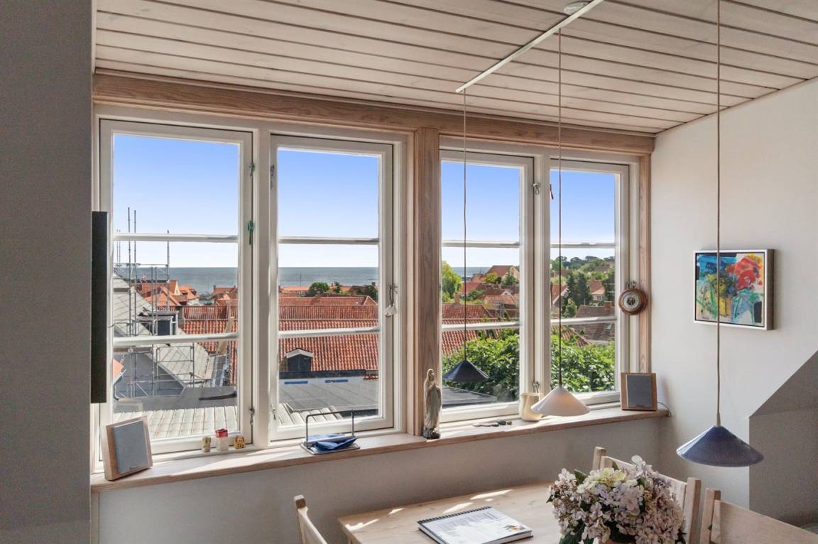 In diesem architektengezeichneten Stadthaus in Svaneke kannst du vom Balkon deiner Ferienwohnung den Blick über die Stadt und das Meer genießen – ein wirklich fantastisches Erlebnis. Auch von innen hast du Aussicht auf die goldmedaillenprämierte Kaufstadt mit ihren alten roten Ziegeldächern. Das Hafenmilieu und der Marktplatz vermitteln dir ein authentisches Gefühl dafür, wie die Stadt einst war, mit ihren wohlhabenden Reedern, die ihre Segelschiffe auf lange Fahrten schickten, um am Überseehandel zu verdienen. Gute Restaurants, Bonbonkocherei, Schokoladenmanufakturen sowie Räucherei und Fischrestaurant sind bequem zu Fuß erreichbar.