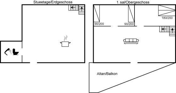 SchlafverhältnisseDie Schlafplätze verteilen sich auf 2 Schlafräume. 4 Schlafplätze in Doppelbetten.