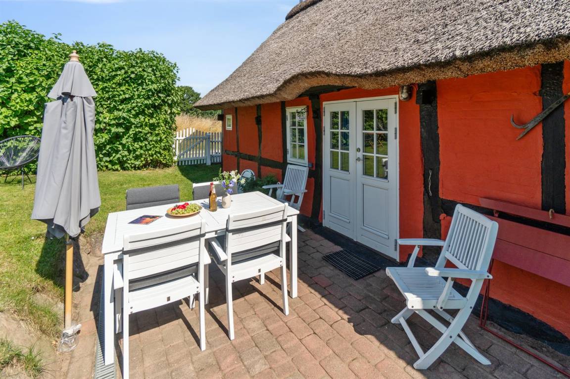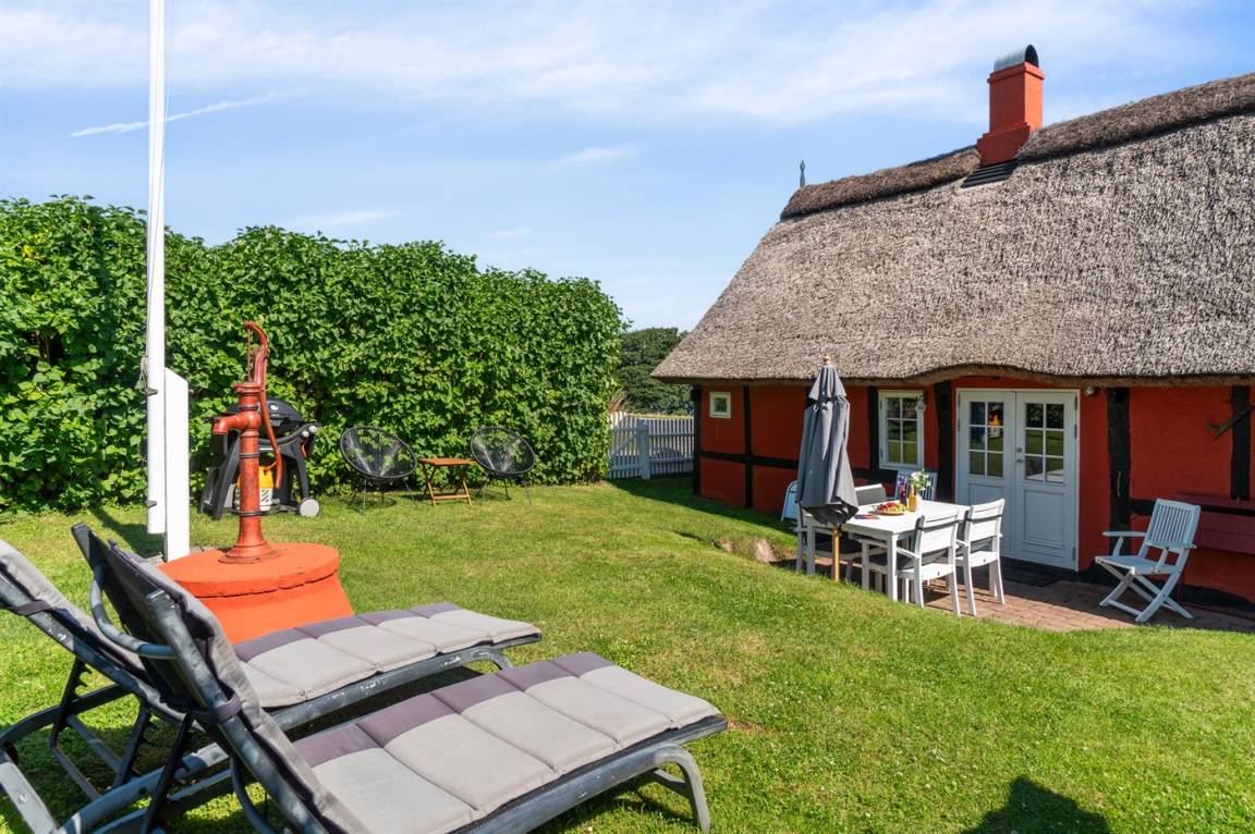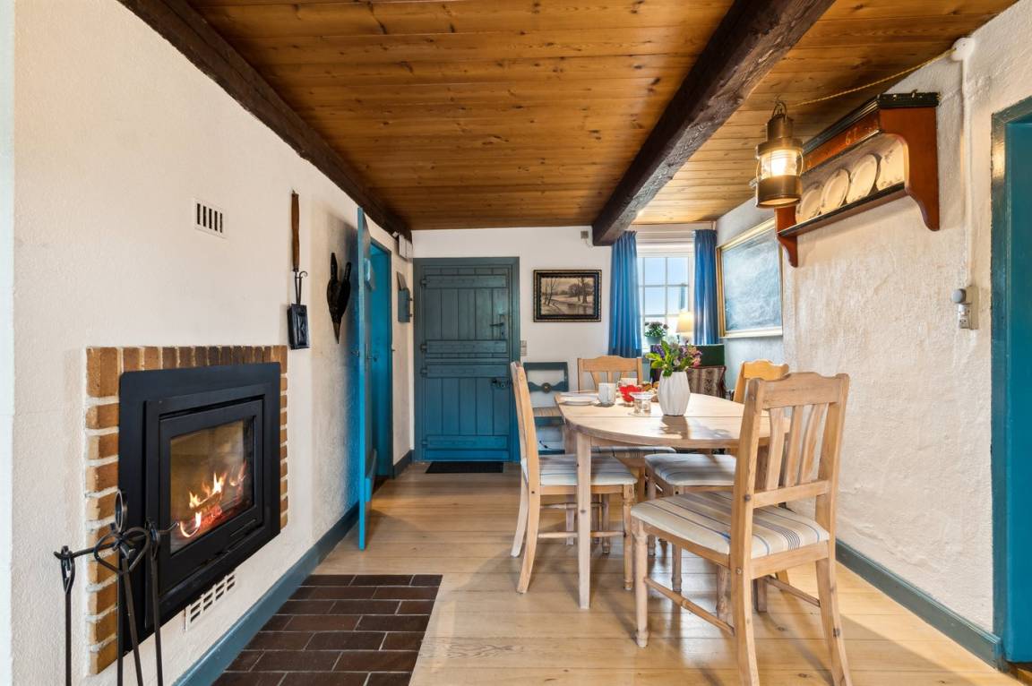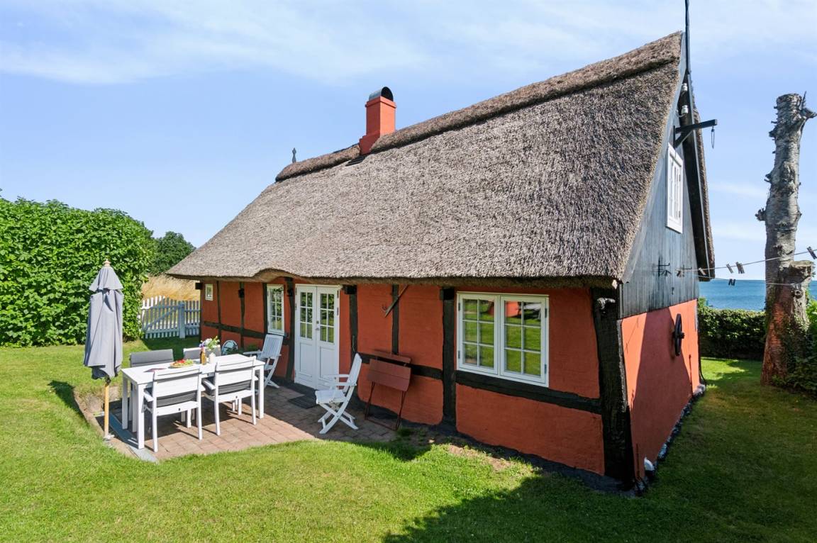 Dieses nettes und idyllische Fachwerkhaus liegt an der Küste bei Bølshavn. Das Haus wurde behutsam renoviert, sodass man immer noch die niedrige Deckenhöhe früherer Zeiten ahnen kann. Somit wurde eine ganz besondere und gemütliche Atmosphäre in diesem gut funktionierenden Ferienhaus mit Reetdach geschaffen.