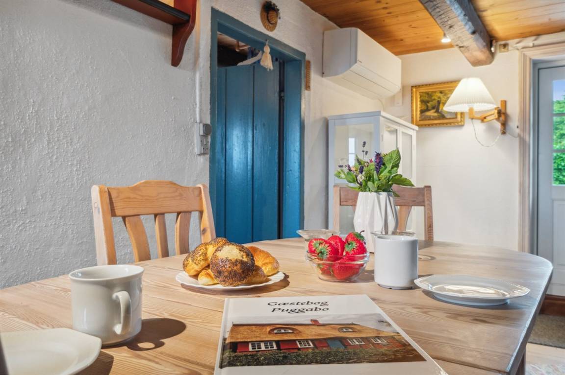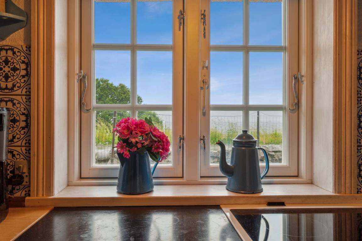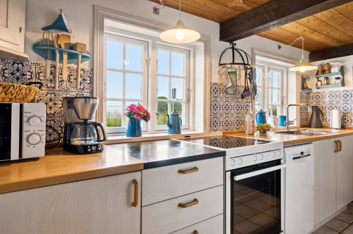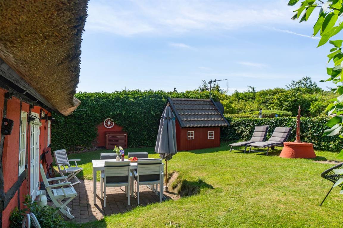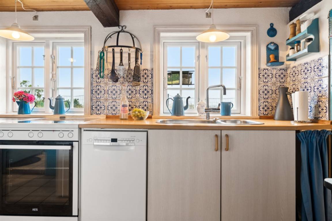 Dieses nettes und idyllische Fachwerkhaus liegt an der Küste bei Bølshavn. Das Haus wurde behutsam renoviert, sodass man immer noch die niedrige Deckenhöhe früherer Zeiten ahnen kann. Somit wurde eine ganz besondere und gemütliche Atmosphäre in diesem gut funktionierenden Ferienhaus mit Reetdach geschaffen.
