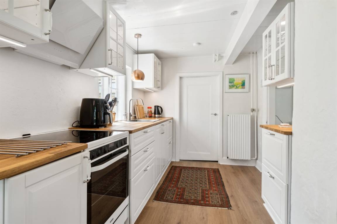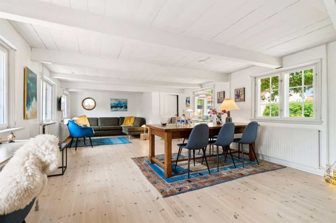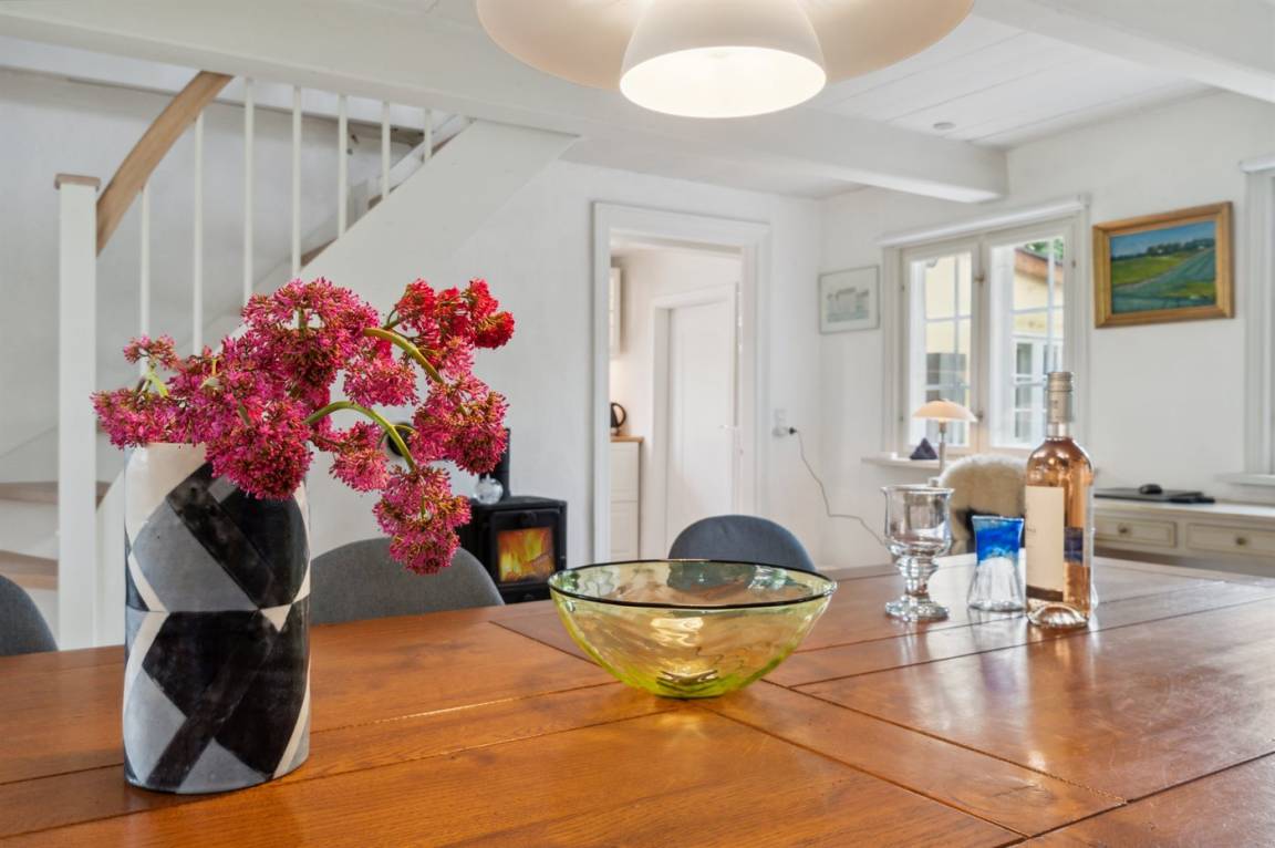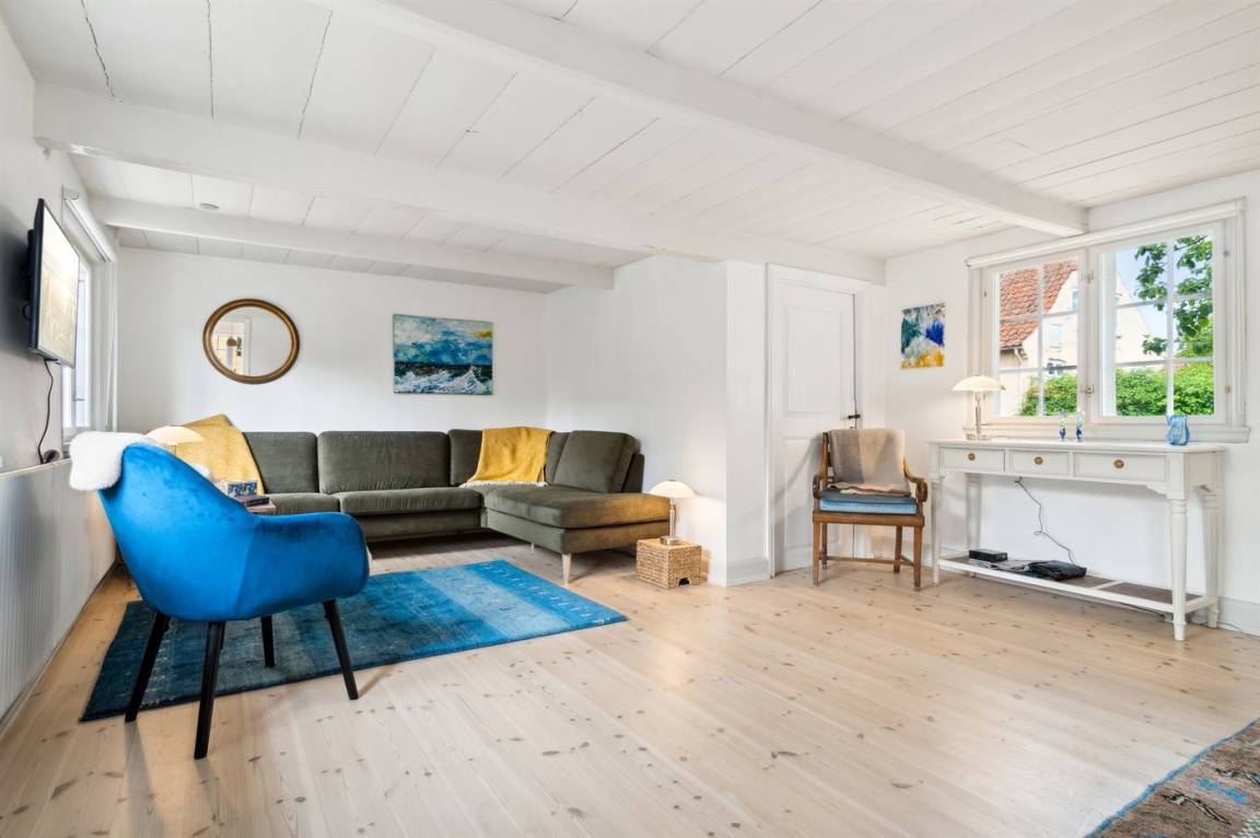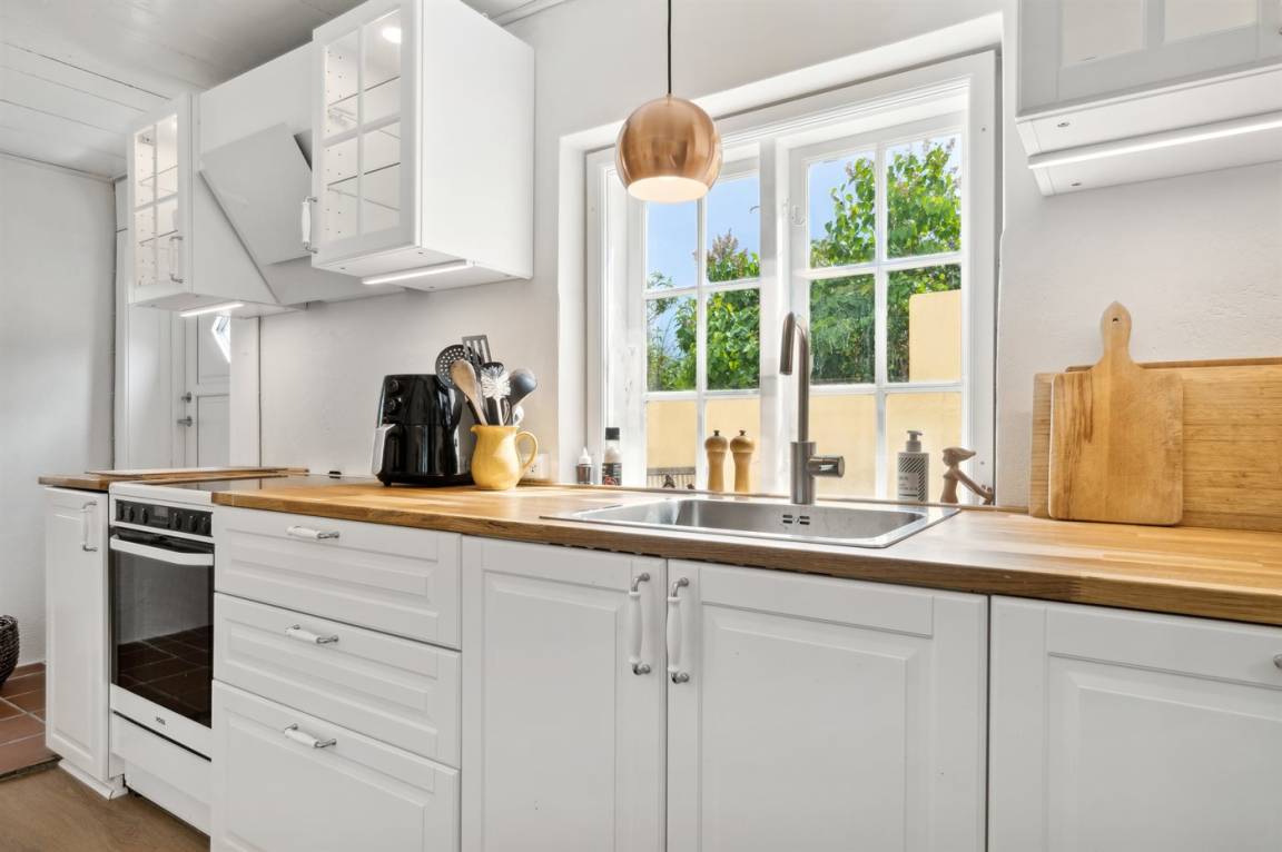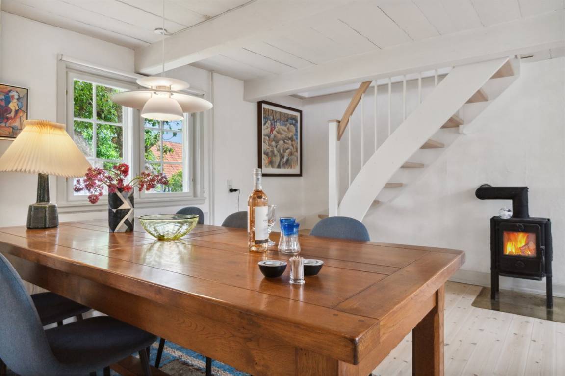 Das Ferienhaus wurde im Jahr 2024 gründlich renoviert und präsentiert sich in einem schönen und modernen Einrichtungsstil. Das Haus erstreckt sich über zwei Etagen mit Schlafzimmern im ersten Stock. Vom Giebelfenster im großen Schlafzimmer hast du einen schönen Blick über die Stadt und das Meer. Da alles in dezenten weißen Farben gehalten ist, ergänzt durch helle, abgeschliffene Böden, fühlt man sich im Haus wirklich wohl. Außerdem gibt es Fliesenböden mit Fußbodenheizung.