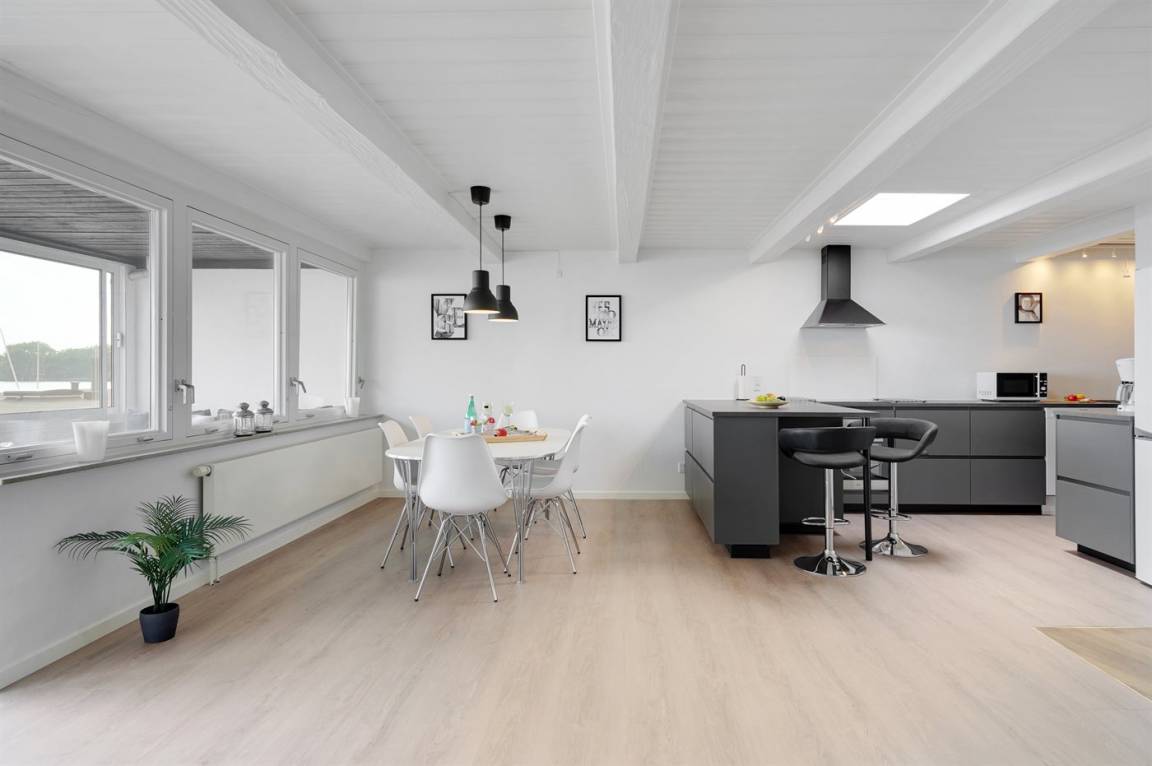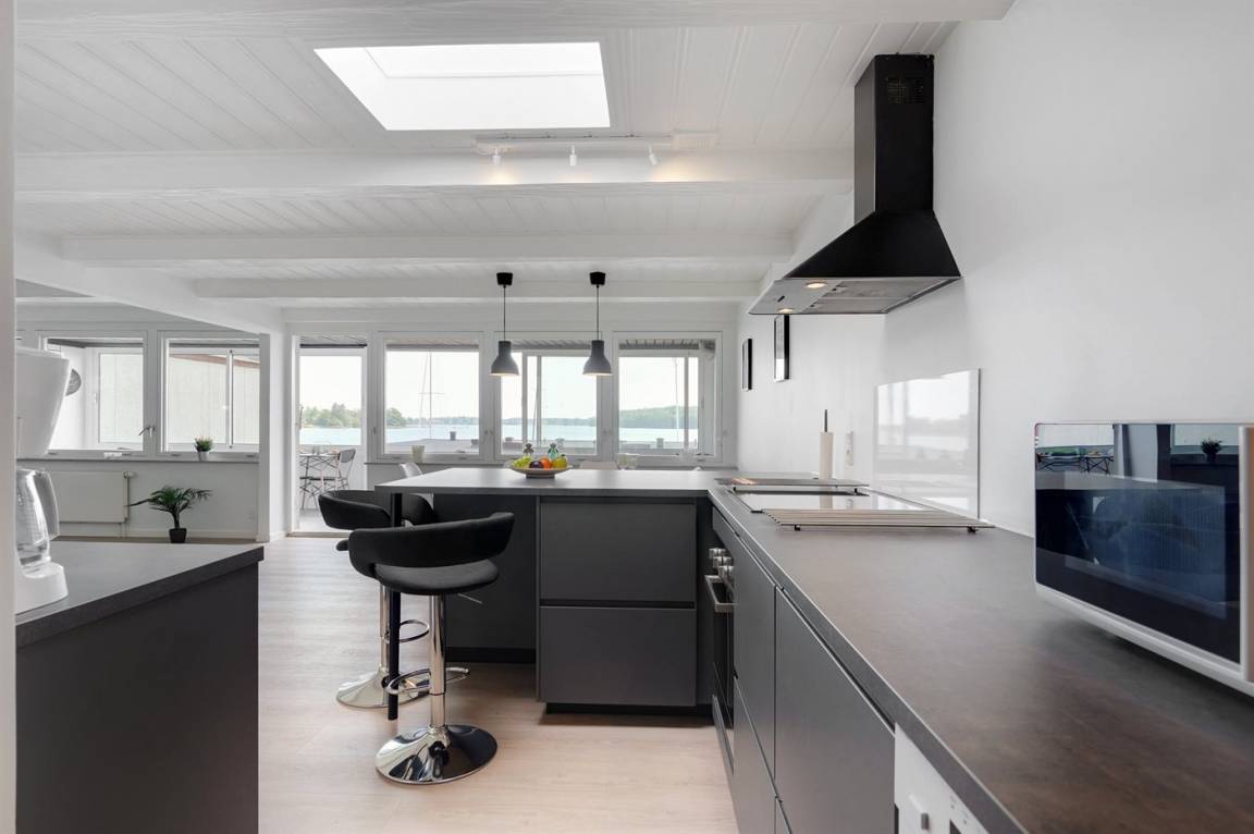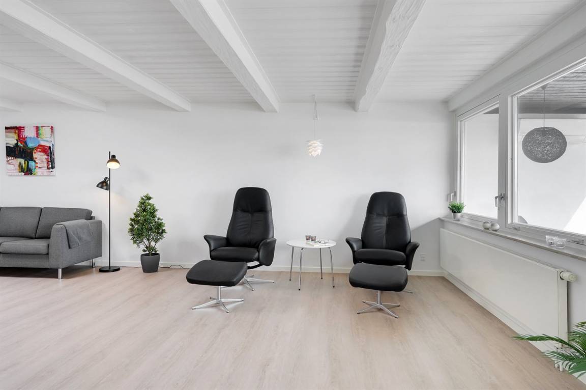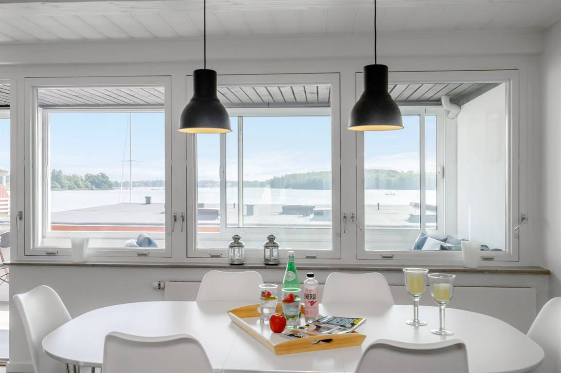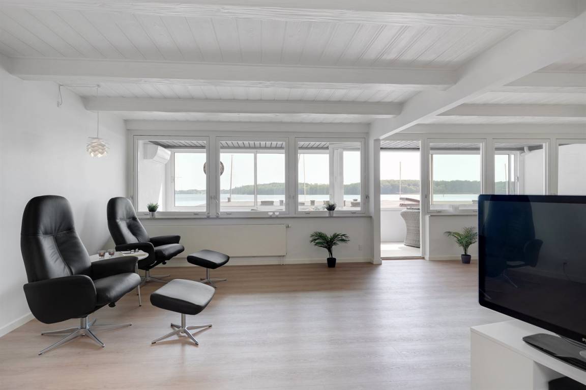Hübsche, renovierte Wohnung mit tollem Blick über den Svendborgsund. Die Wohnung gehört zu einem größeren Komplex, in dem die Wohnungen leicht erhöht liegen, sodass man in allen Wohnungen einen herrlichen Blick vom Wohnzimmer, von der Wohnküche und von der hübschen Loggia hat. Vom Wohnzimmer und von der Küche aus gelangt man direkt auf die Loggia, die mit einer eigenen Wärmepumpe ausgestattet ist und dadurch das ganze Jahr genutzt werden kann.