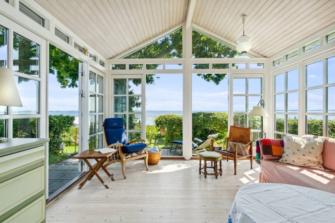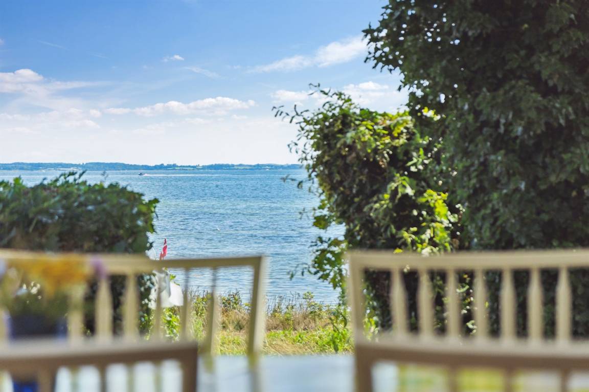 Sowohl vom Haus als auch von der nach Süden ausgerichteten Terrasse vor dem Haus aus kann man die Aussicht über das Gewässer zwischen Thurø und Tåsinge/Langeland genießen. Hinter dem Haus befindet sich ein gemütlicher Atriumgarten mit Zugang zum Gästehaus und zum Badezimmer des Hauses.