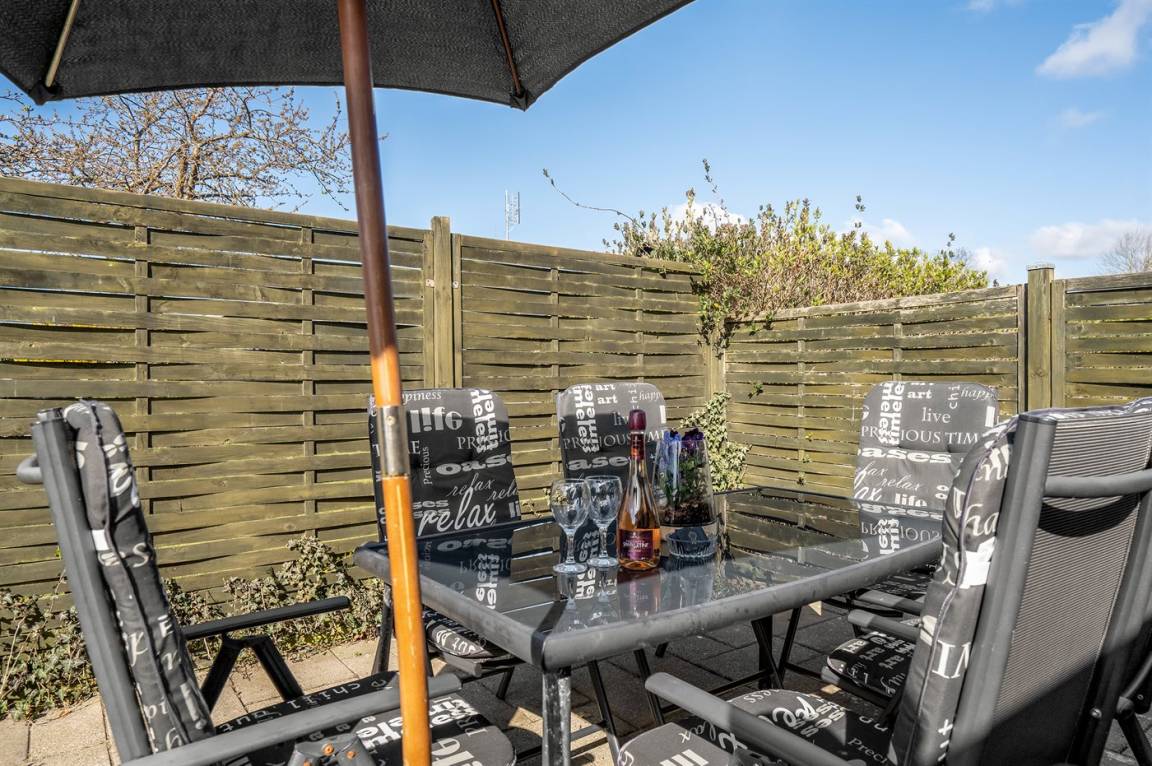 Auf dem 149 m² großen und eingezäunten Gartengrundstück gibt es eine offene Terrasse (20 m²) mit Gasgrill. Nur 50 m vom Haus entfernt liegt ein gemeinschaftlicher Parkplatz.
