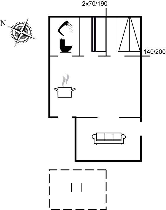 Das Haus verfügt über 4 Schlafplätze und eignet sich daher für 2 Erwachsene und 2 Kinder. Die Schlafplätze verteilen sich auf 2 Zimmer; 1 mit Doppelbett (140x200 cm) und 1 Zimmer mit Etagenbett.