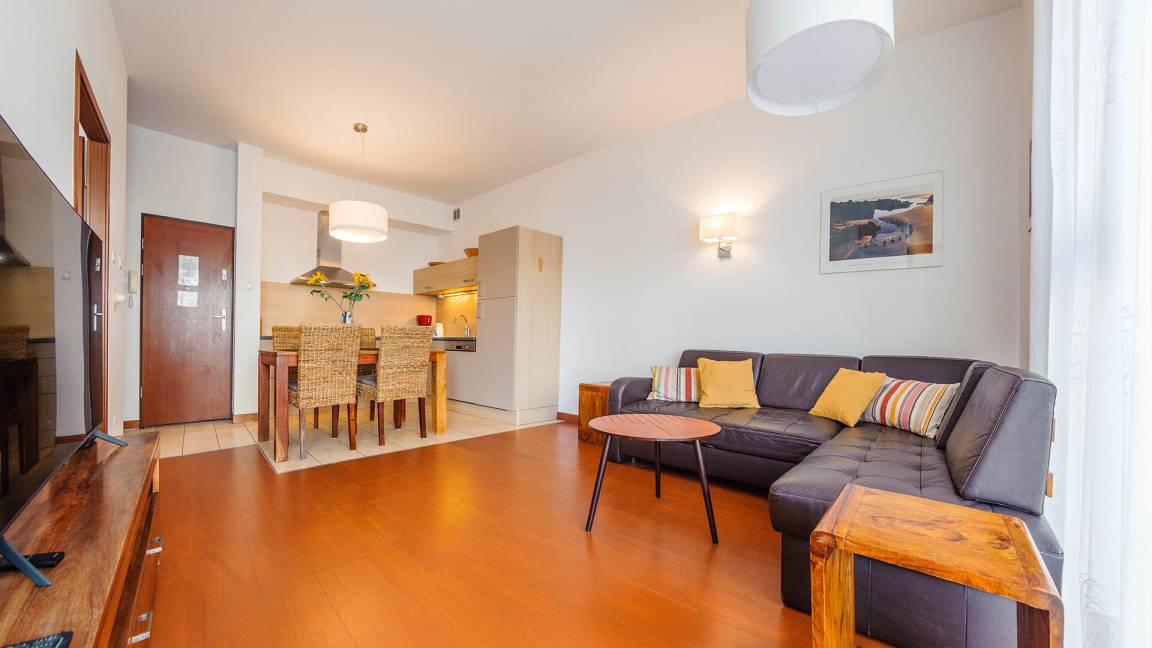Sie können mit einem Hund in die ausgewählte Wohnung kommen. Die zusätzlichen Kosten für den Aufenthalt mit einem Haustier betragen 40 PLN/tag.