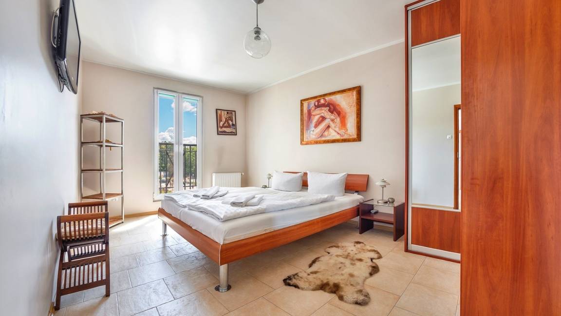 • Haustiere sind in der ausgewählten Wohnung erlaubt. Die Kosten für den Aufenthalt mit einem Haustier betragen 40 PLN pro Tag.