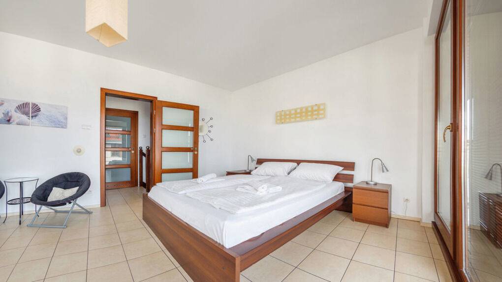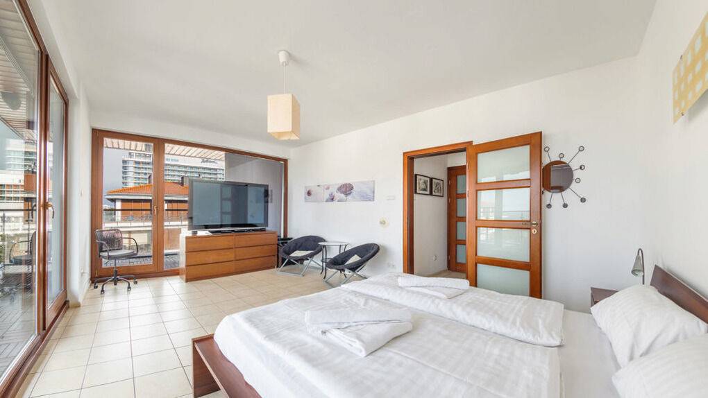 Wir bieten Ihnen Apartments gleich an einem breiten Sandstrand an. Im Teil der Apartments gibt es eine schöne Aussicht aufs Meer.