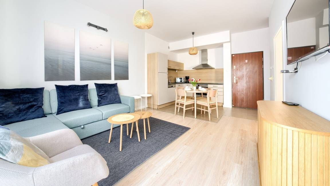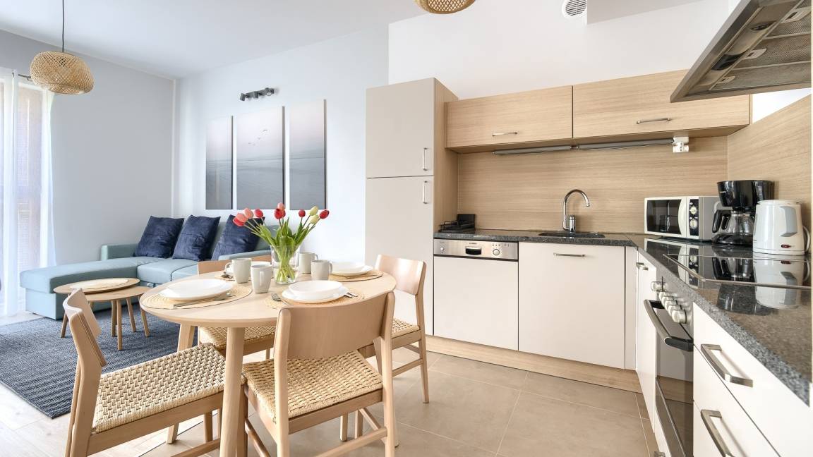Luxuriöse Apartments in Baltic Park Plaża – direkt am feinsandigen Strand und an der Promenade von Świnoujście. Mit Meerblick, voll ausgestatteter Küchenzeile und ruhiger Lage bieten sie perfekten Komfort für erholsame Strandtage, Spaziergänge und unvergessliche Urlaubsmomente.