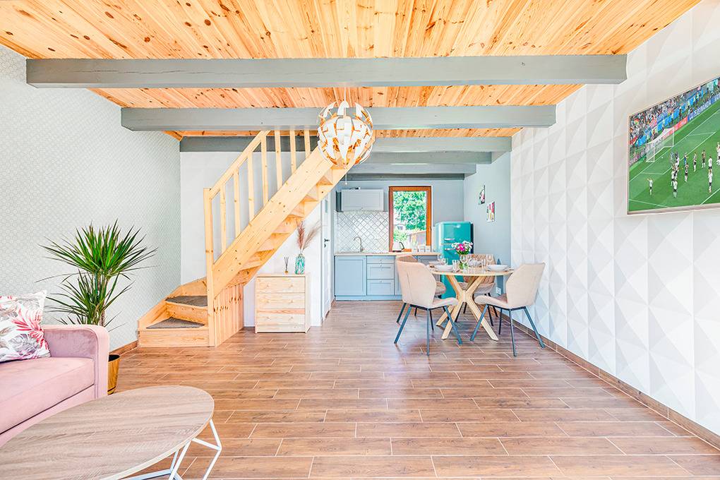Gemütliche Ferienhäuser mit moderner Einrichtung. Kostenloses Internet über WLan. Heizung über Klimaanlage und E-Radiatoren, Warmwasser über Boiler (100 l). 1 Parkplatz/Ferienhaus im Mietpreis inklusiv.