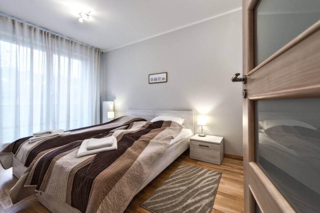 Wir laden Sie in moderne Apartments in der Nähe der Spazierpromenade ein. Die Anlage liegt in der Nähe des Kurparks und des Strandes.