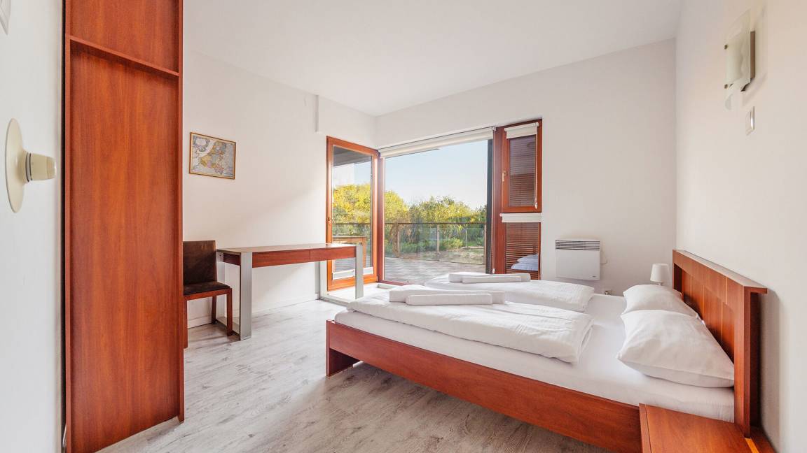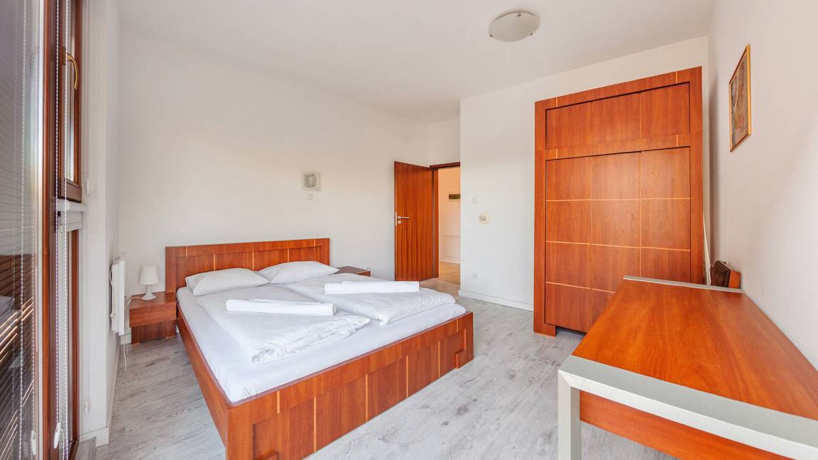 Wir bieten Ihnen Apartments gleich an einem breiten Sandstrand an. Im Teil der Apartments gibt es eine schöne Aussicht aufs Meer.