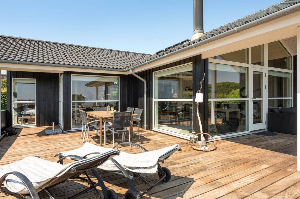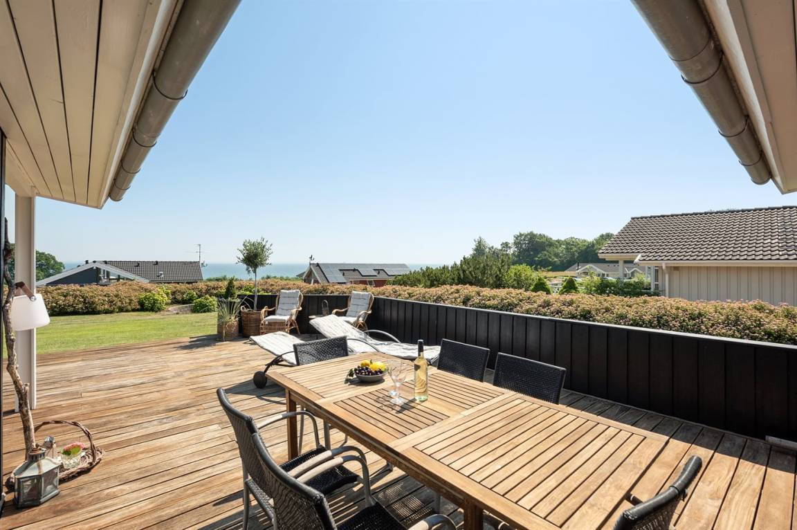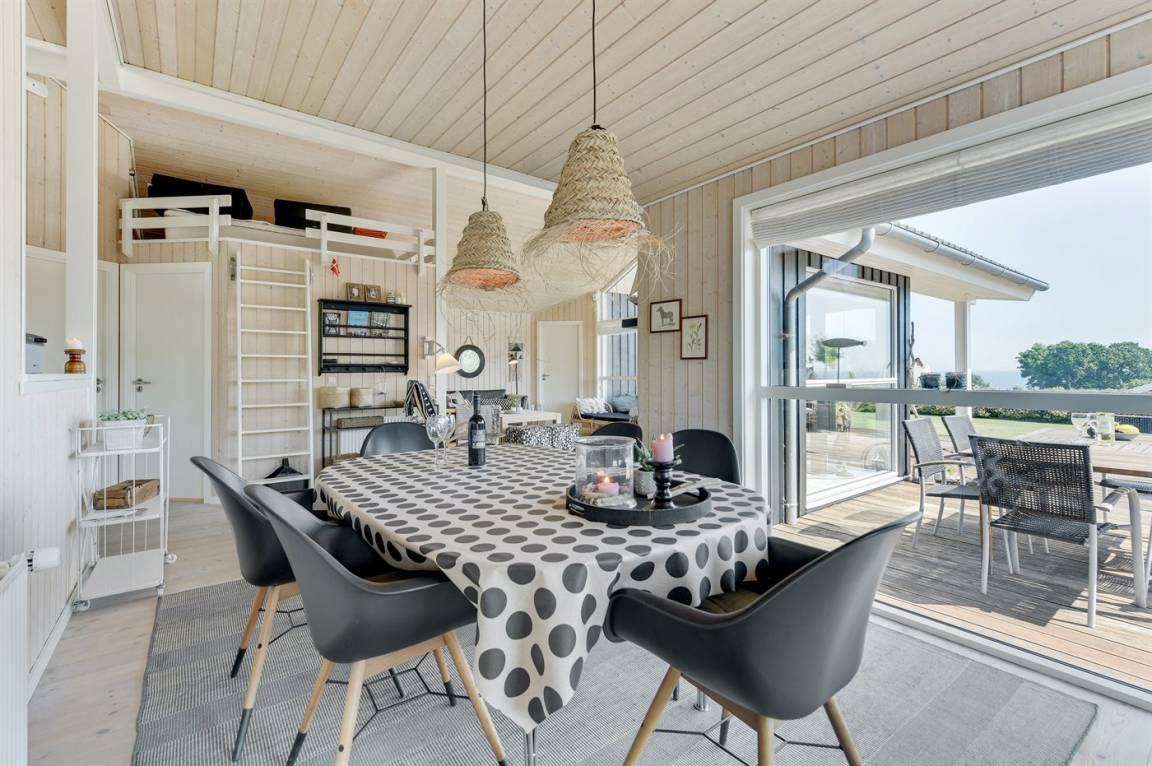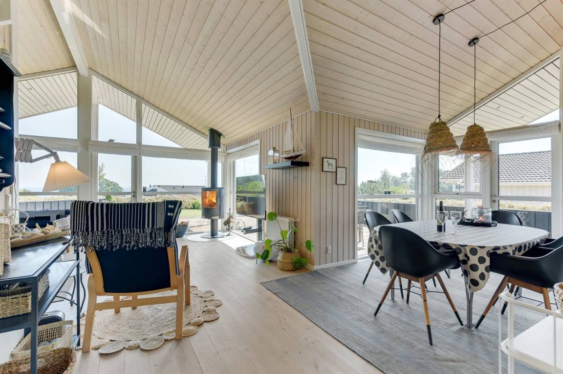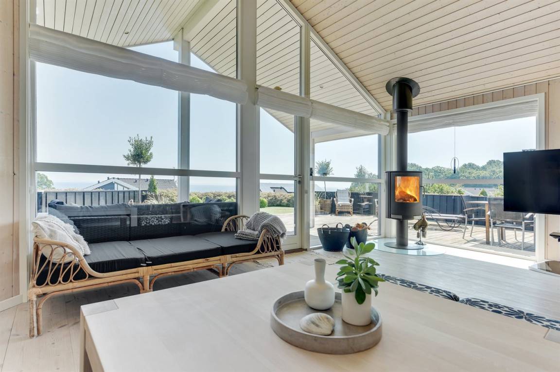 Mit Panoramaaussicht über den kleinen Belt finden Sie dieses besonders schöne und geräumige Ferienhaus. Das Haus beinhaltet alles was das Herz begehrt – es stehen u. a. 2 Badezimmer zur Verfügung – das eine ist groß und luxuriös eingerichtet mit Whirlpool, Finnische Sauna sowie Multifunktionsdusche. Außerdem gibt es eine moderne Küche und ein großes Wohnzimmer – die in eine Ess- und Wohnabteilung eingeteilt sind. Neben all diesem Komfort ist der Energieverbrauch des Hauses niedrig, da eine Heizanlage installiert ist. Übrigens: 2 der Schlafplätze finden Sie in Form von Matratzen im offenen Obergeschoss.
