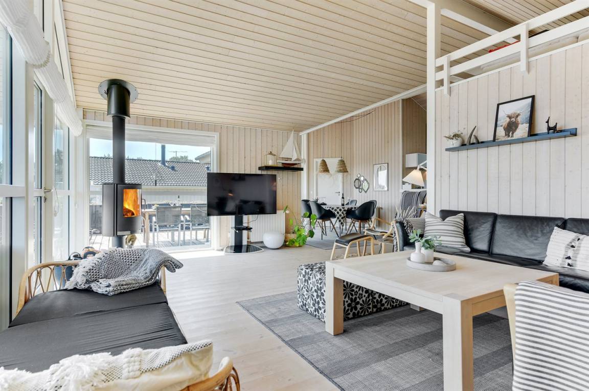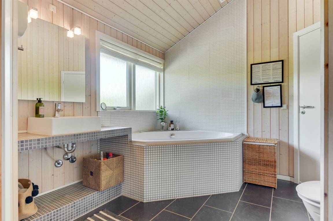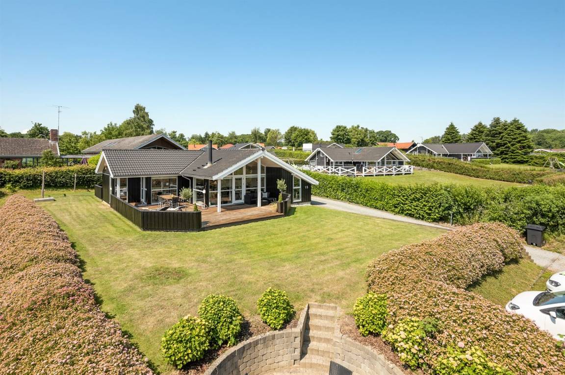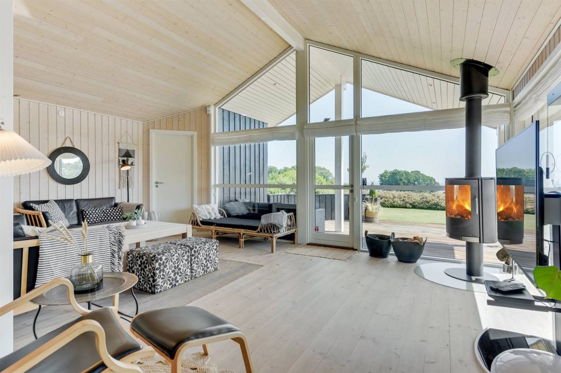 Mit Panoramaaussicht über den kleinen Belt finden Sie dieses besonders schöne und geräumige Ferienhaus. Das Haus beinhaltet alles was das Herz begehrt – es stehen u. a. 2 Badezimmer zur Verfügung – das eine ist groß und luxuriös eingerichtet mit Whirlpool, Finnische Sauna sowie Multifunktionsdusche. Außerdem gibt es eine moderne Küche und ein großes Wohnzimmer – die in eine Ess- und Wohnabteilung eingeteilt sind. Neben all diesem Komfort ist der Energieverbrauch des Hauses niedrig, da eine Heizanlage installiert ist. Übrigens: 2 der Schlafplätze finden Sie in Form von Matratzen im offenen Obergeschoss.