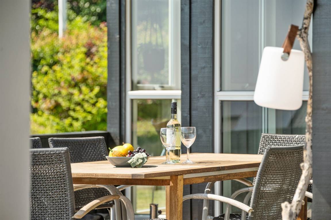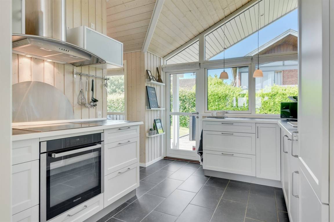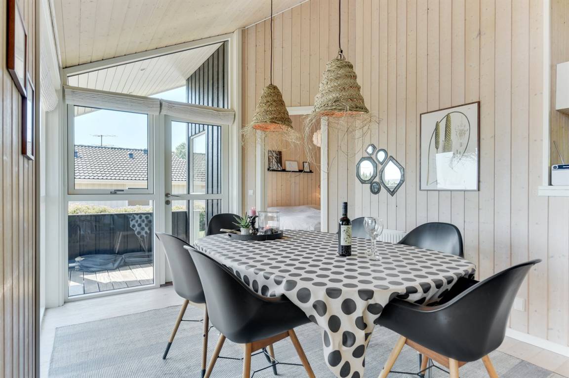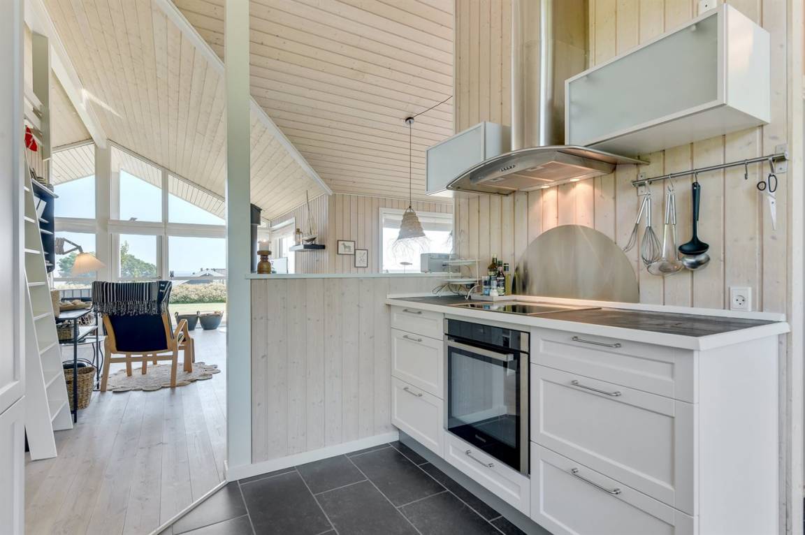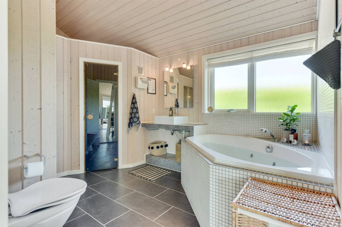 Mit Panoramaaussicht über den kleinen Belt finden Sie dieses besonders schöne und geräumige Ferienhaus. Das Haus beinhaltet alles was das Herz begehrt – es stehen u. a. 2 Badezimmer zur Verfügung – das eine ist groß und luxuriös eingerichtet mit Whirlpool, Finnische Sauna sowie Multifunktionsdusche. Außerdem gibt es eine moderne Küche und ein großes Wohnzimmer – die in eine Ess- und Wohnabteilung eingeteilt sind. Neben all diesem Komfort ist der Energieverbrauch des Hauses niedrig, da eine Heizanlage installiert ist. Übrigens: 2 der Schlafplätze finden Sie in Form von Matratzen im offenen Obergeschoss.