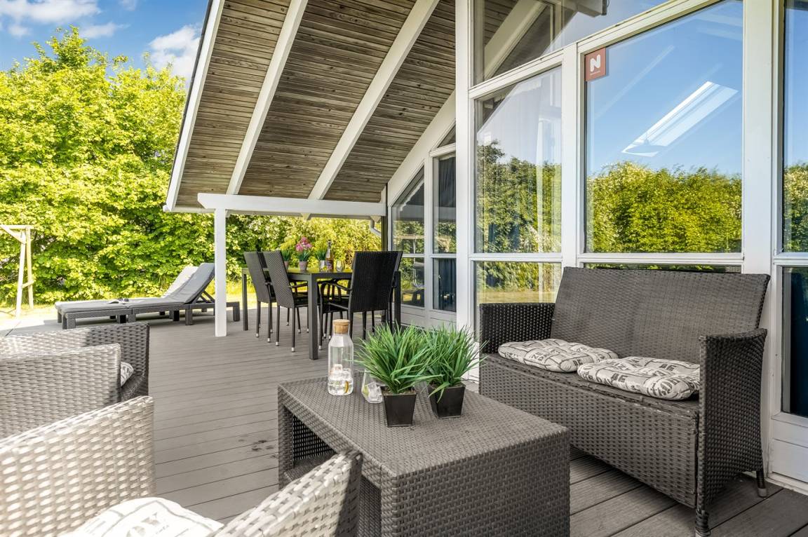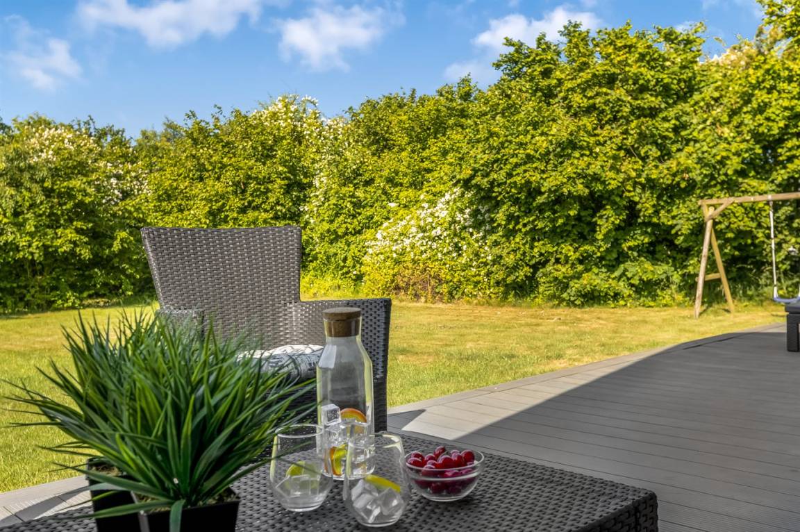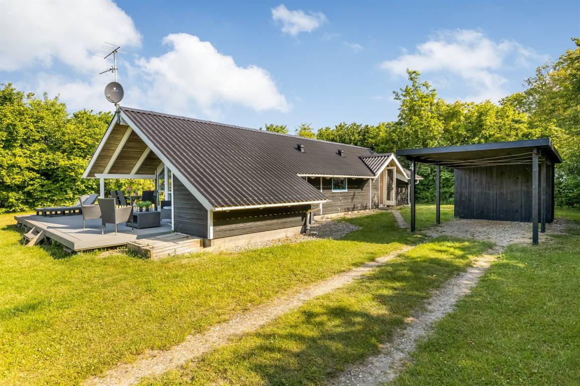 DraußenDie Ferienunterkunft liegt auf einem 1500 m² großen Naturgrundstück. Die Entfernung zum Meer beträgt 400 m. Die nächste Einkaufsmöglichkeit liegt 9000 m entfernt. In einem Abstand von 21000 m gibt es einen Golfplatz. Es steht ein offenes Terrassenareal zur Verfügung. Außerdem gibt es überdachte Terrasse. Es steht ein Grill zur Verfügung. Es steht ein Carport zur Verfügung. Parkplatz auf dem Grundstück.
