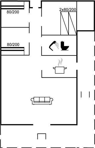 SchlafverhältnisseDie Schlafplätze verteilen sich auf 3 Schlafräume. 2 Schlafplätze in einem Doppelbett. 4 Schlafplätze in Etagenbetten. Ferner steht ein Kinderbett zur Verfügung.