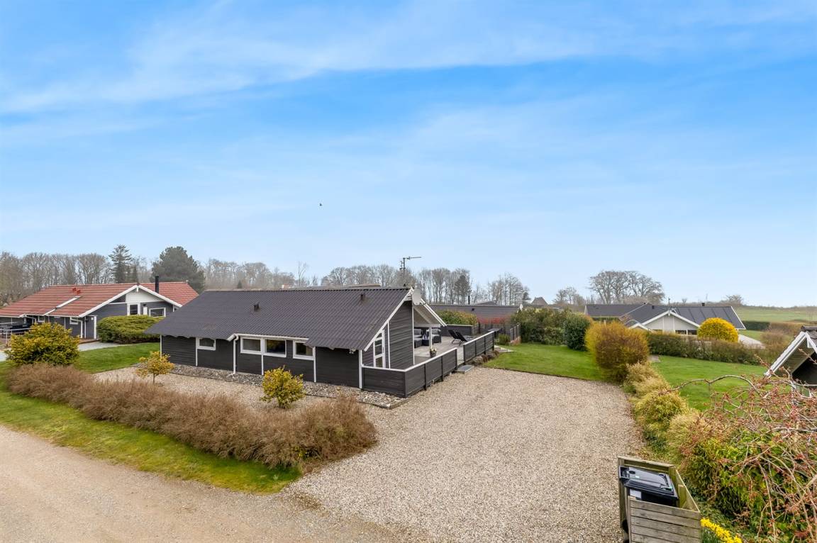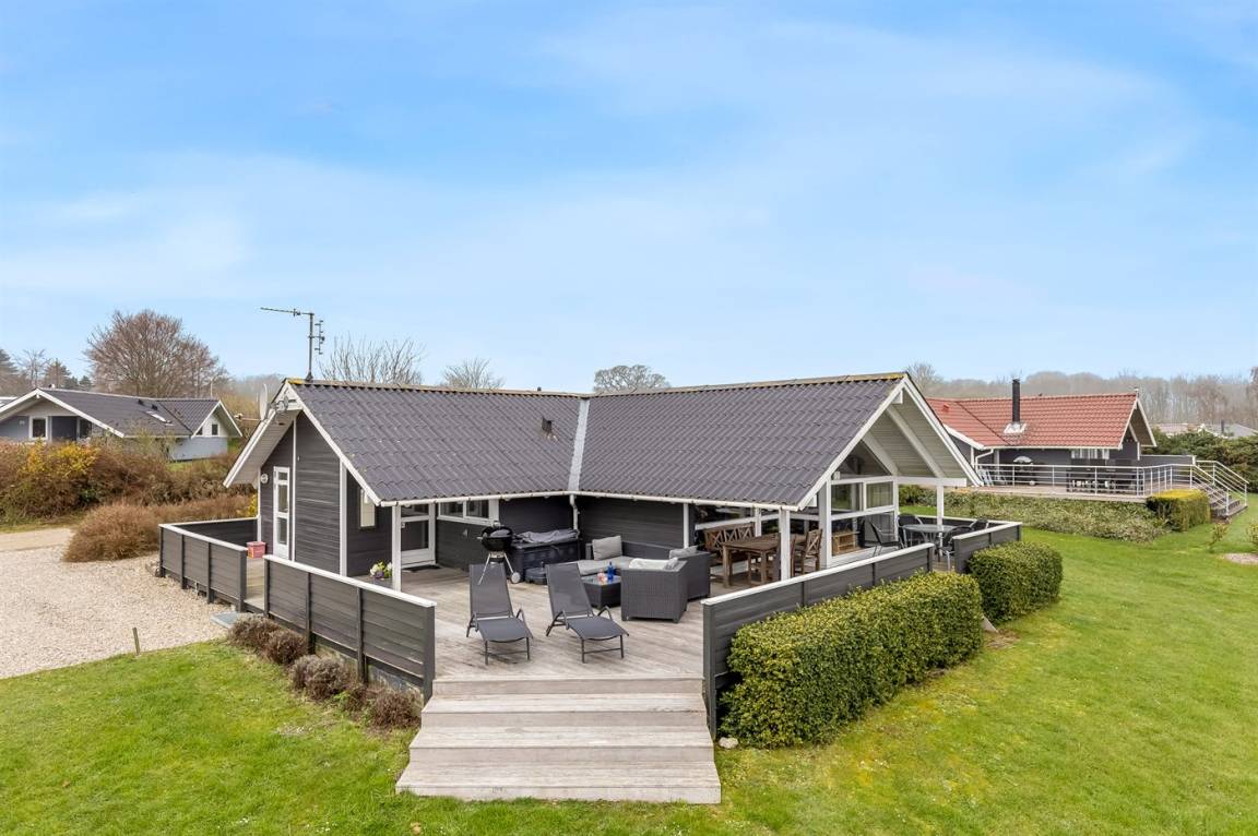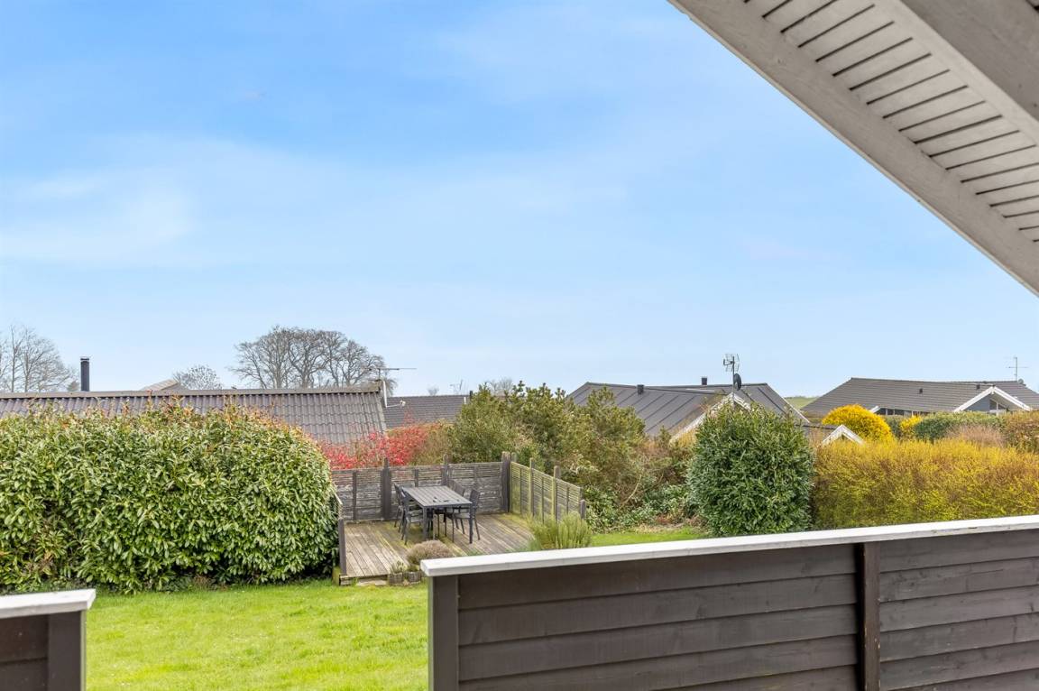 Ein hoch gelegenes Ferienhaus mit herrlichem Meeresblick sowohl vom Haus als auch vom Grundstück. Das Haus liegt auf einem leicht schrägenden Grundstück, in einem ruhigen Ferienhausgebiet, dicht an einem Badestrand.