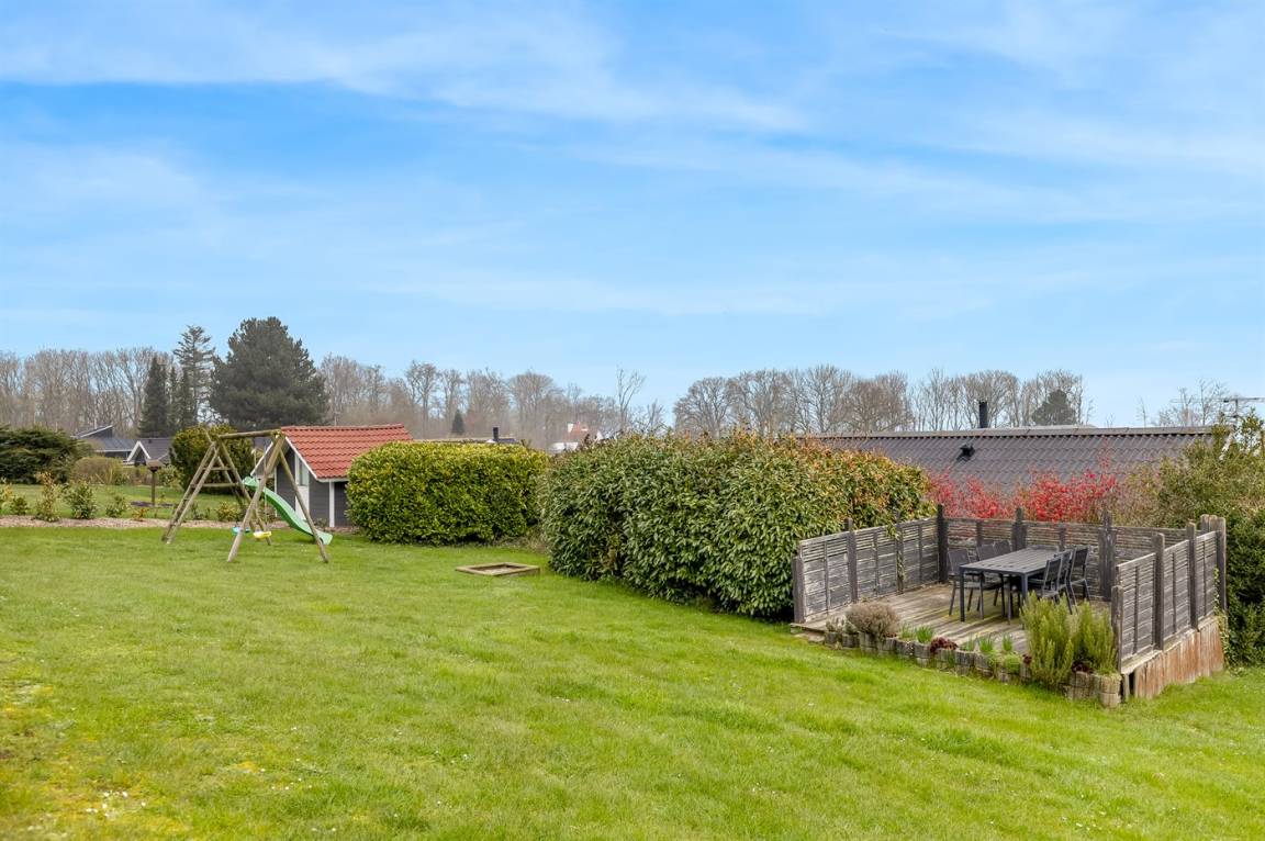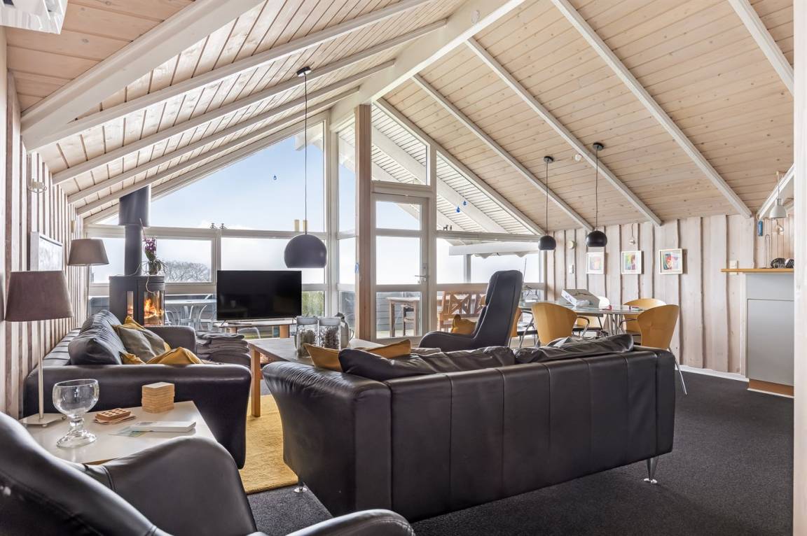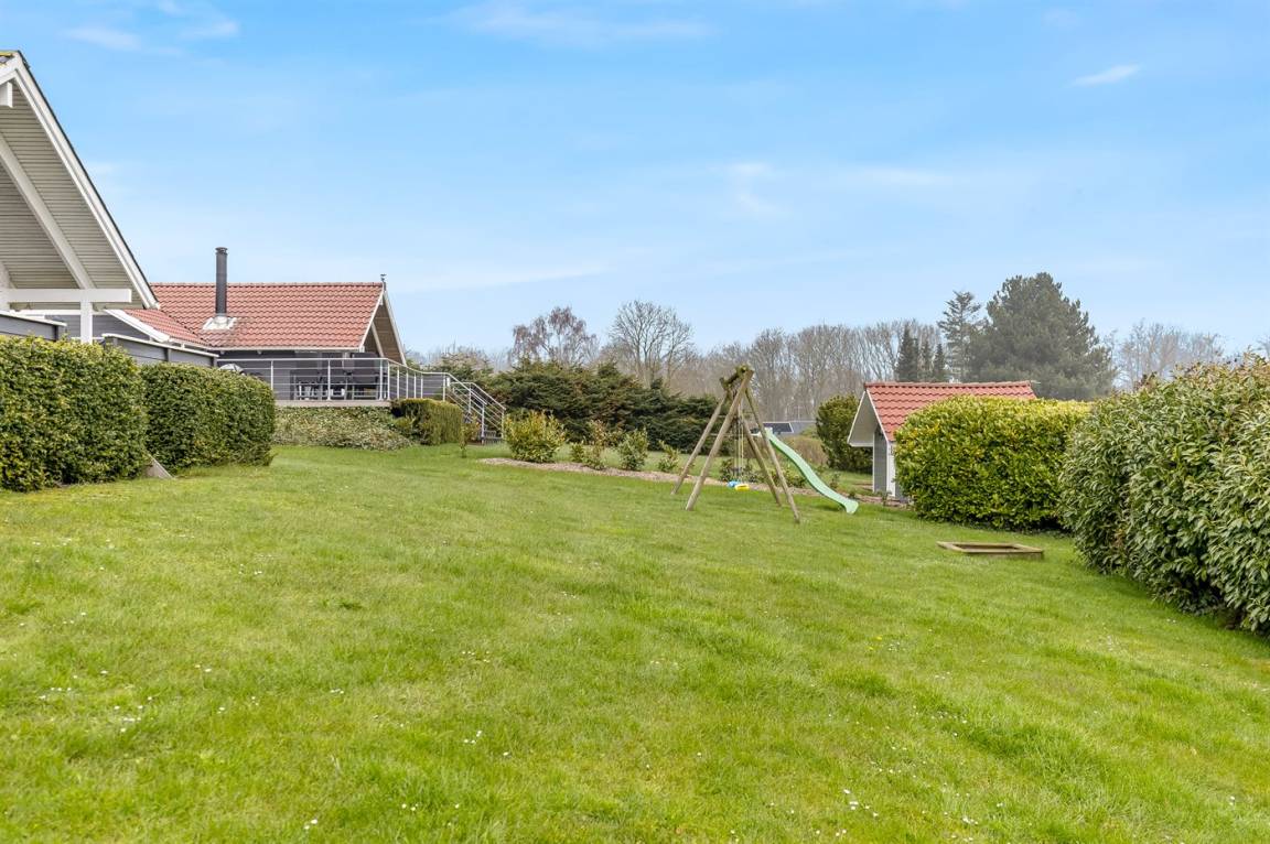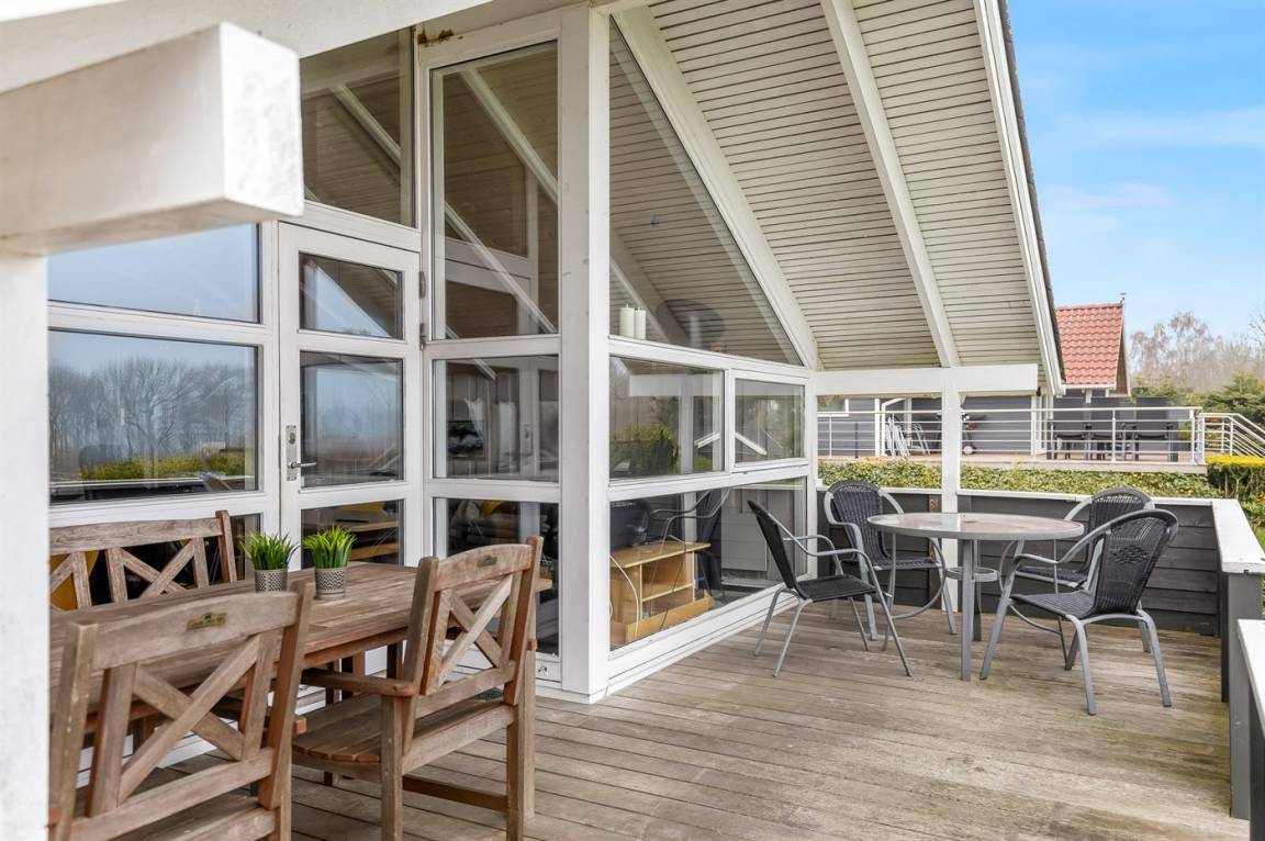 Ein hoch gelegenes Ferienhaus mit herrlichem Meeresblick sowohl vom Haus als auch vom Grundstück. Das Haus liegt auf einem leicht schrägenden Grundstück, in einem ruhigen Ferienhausgebiet, dicht an einem Badestrand.