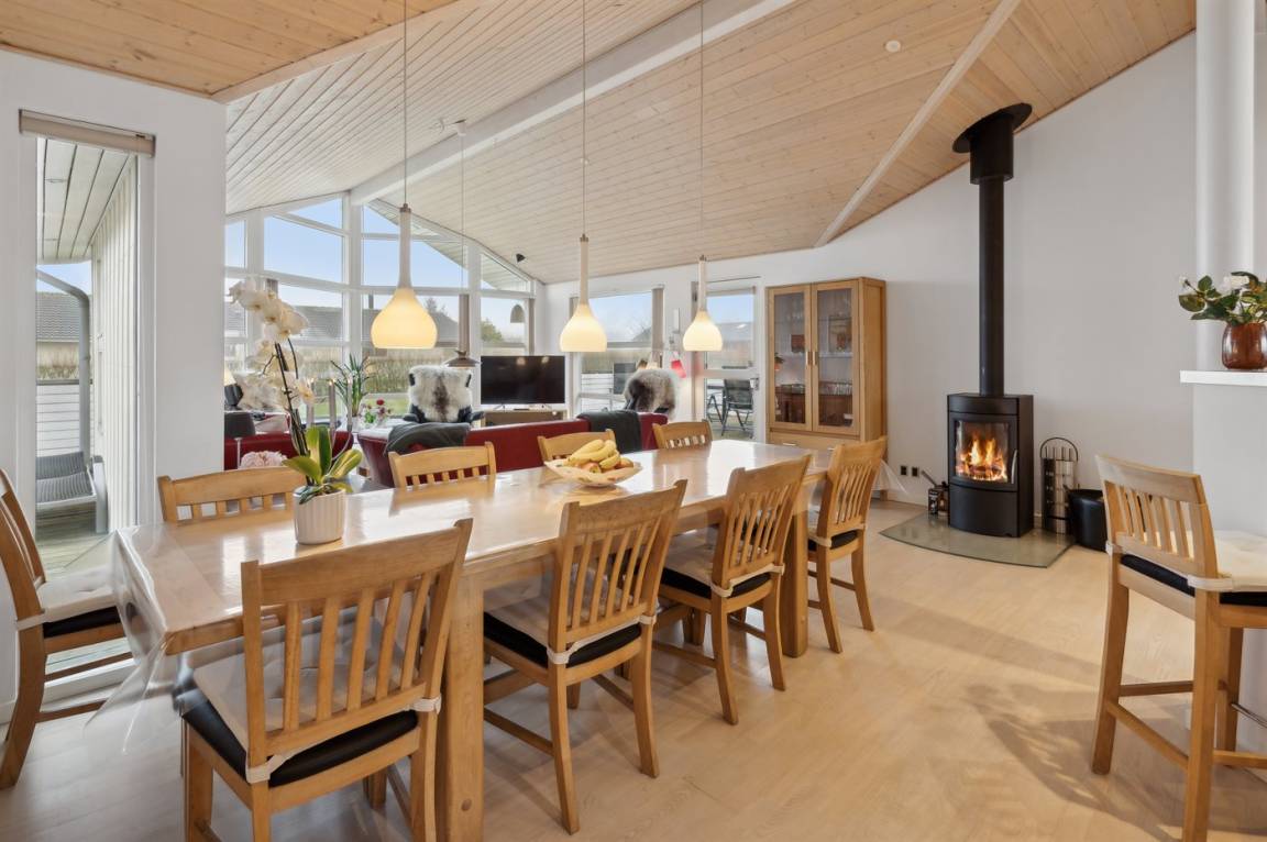 EinrichtungDas Ferienhaus eignet sich für 8 Personen sowie 2 Kleinkinder bis zu 3 Jahren. Die Ferienunterkunft hat eine Wohnfläche von 144 m² und wurde 2007 gebaut. Haustiere dürfen nicht mitgebracht werden. Die Ferienunterkunft ist mit energiesparender Wärmepumpe ausgestattet. Die Ferienunterkunft ist mit Waschmaschine ausgestattet. Wäschetrockner. Tiefkühlmöglichkeit mit 50 Liter Nutzinhalt. Es gibt außerdem einen Kaminofen. Für die jüngsten Feriengäste sind 2 Kinderhochstühle vorhanden.