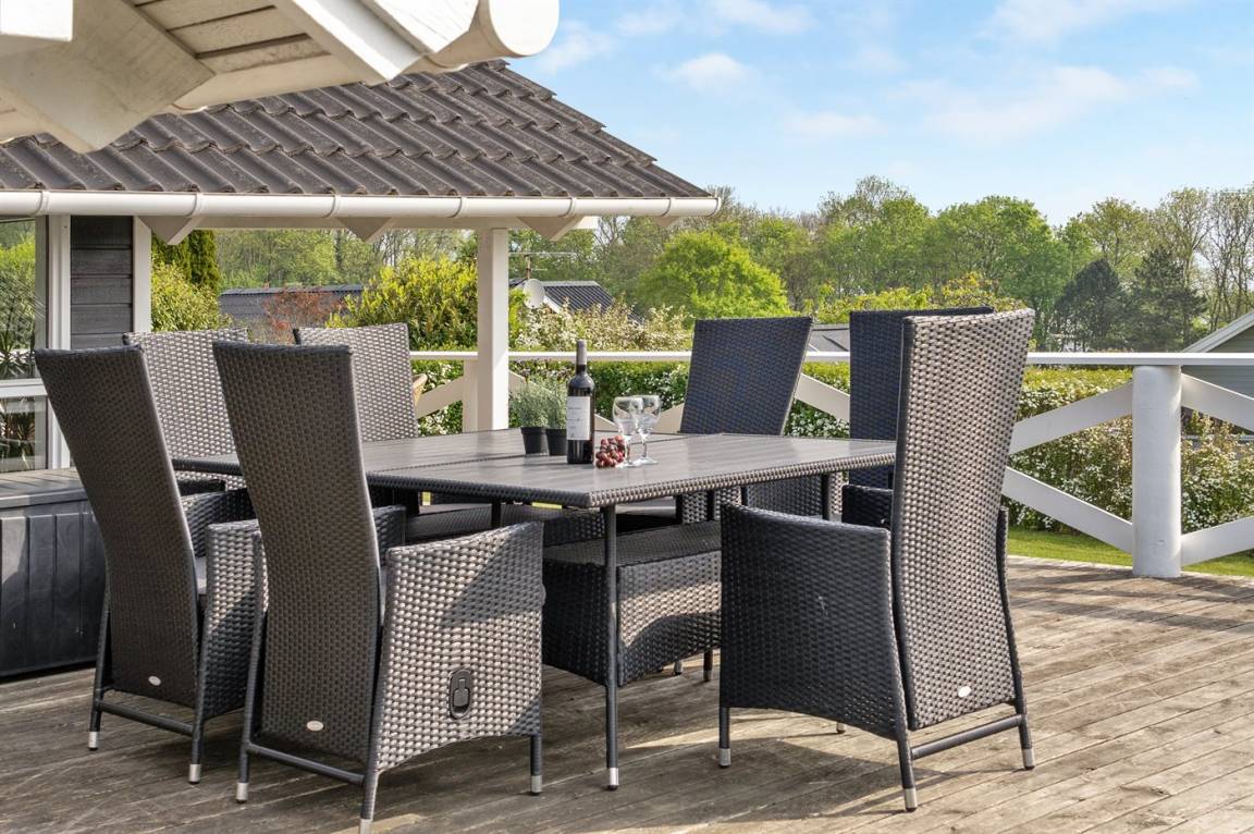 DraußenDie Ferienunterkunft liegt auf einem 826 m² großen Gartengrundstück. Die Entfernung zum Meer beträgt 200 m. Die nächste Einkaufsmöglichkeit liegt 4000 m entfernt. Es steht ein 70 m² Terrassenareal zur Verfügung. Außerdem gibt es 20 m² überdachte Terrasse. Schaukel. Sandkasten. Es steht ein Grill zur Verfügung. Parkplatz auf dem Grundstück.