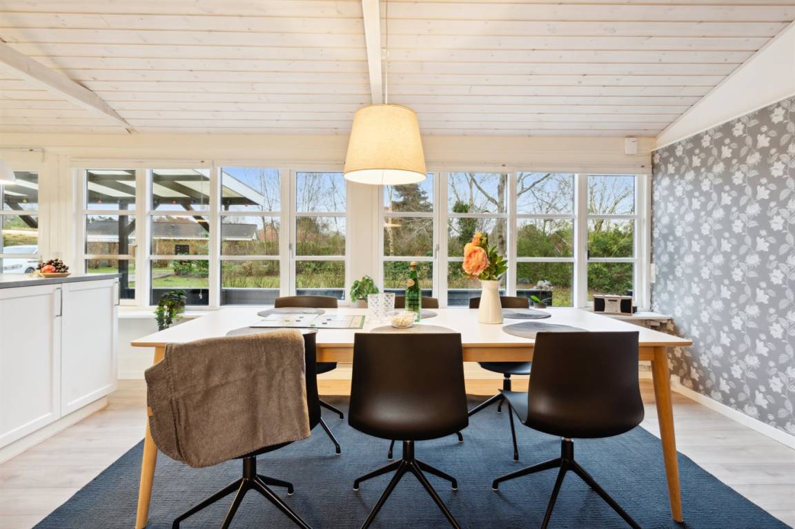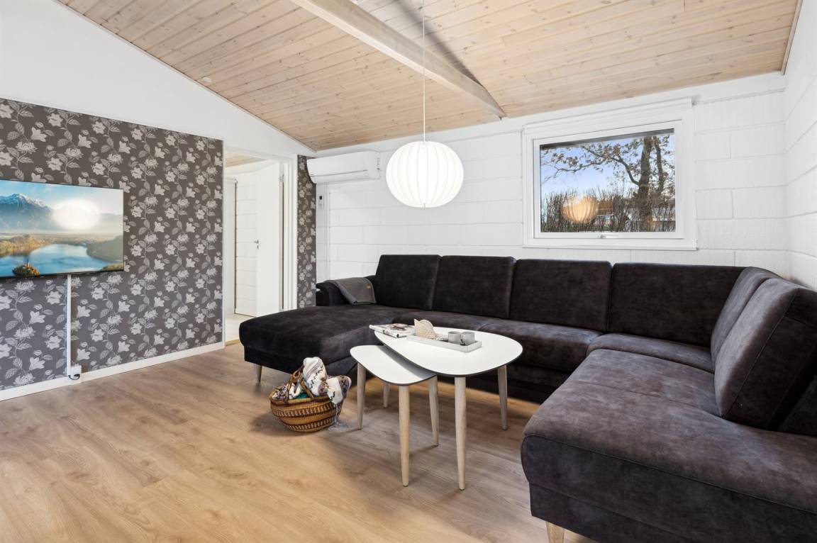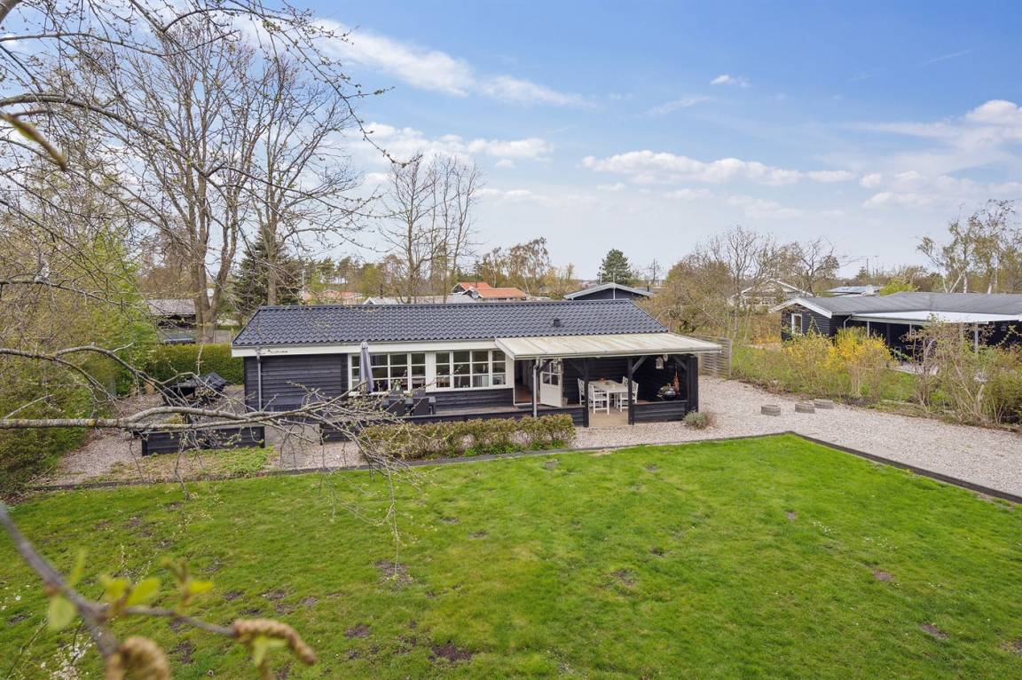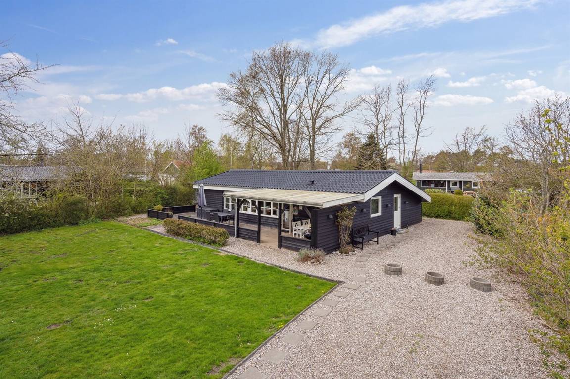 Sehr gut gepflegtes Ferienhaus auf einem Grundstück mit großem Rasen dicht an einem schönen Badestrand in einem Gebiet mit guten Wassersportmöglichkeiten gelegen.