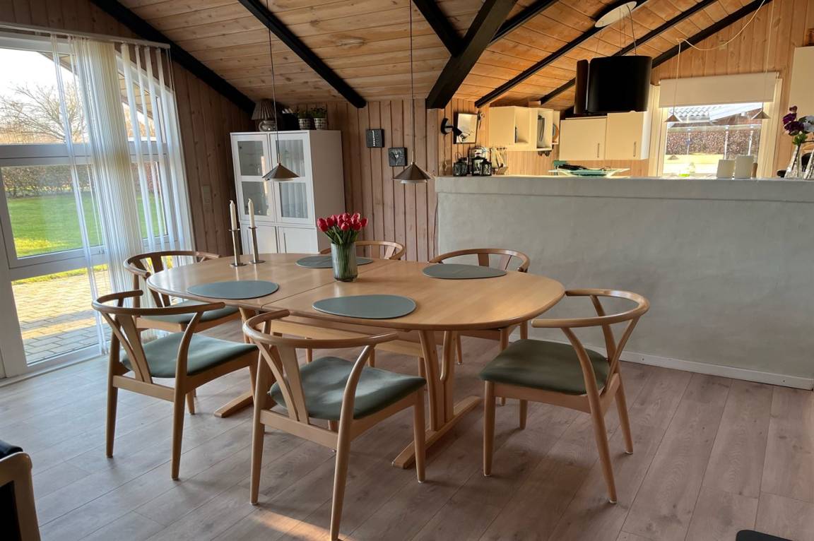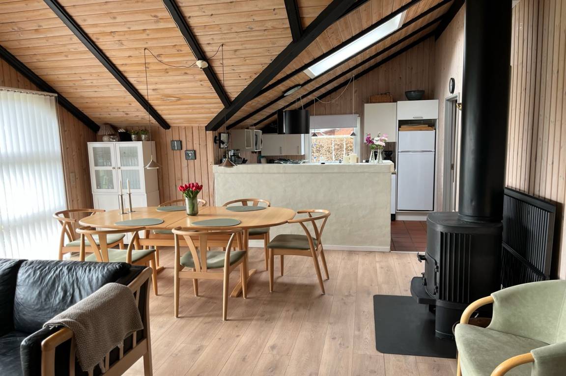 EinrichtungDas Ferienhaus eignet sich für 7 Personen sowie 1 Kleinkind bis zu 3 Jahren. Die Ferienunterkunft hat eine Wohnfläche von 79 m² und wurde 1987 gebaut. 2019 wurde die Ferienunterkunft teilweise renoviert. Es ist erlaubt 1 Haustier mitzubringen. Die Ferienunterkunft ist mit energiesparender Wärmepumpe ausgestattet. Die Ferienunterkunft ist mit Waschmaschine ausgestattet. Wäschetrockner. Tiefkühlmöglichkeit mit 30 Liter Nutzinhalt. Es gibt außerdem einen Kaminofen. Für die jüngsten Feriengäste ist 1 Kinderhochstuhl vorhanden.