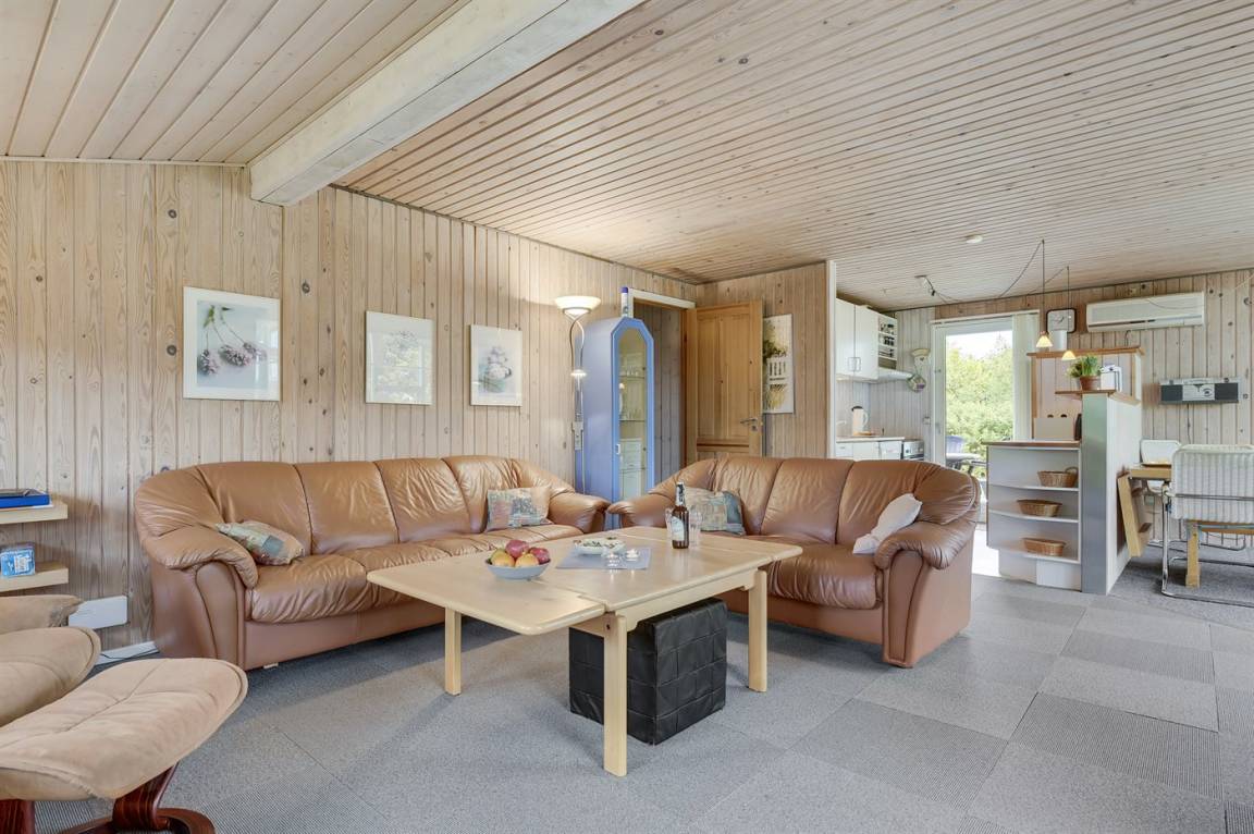 Geräumiges und Gepflegtes Ferienhaus in ruhiger Umgebung gelegen - nur 400 Meter von einem breiten Sandstrand entfernt. Das Ferienhaus liegt auf einem schönen von hohen Hecken und Bäumen umgebenen Grundstück. Das Ferienhaus ist mit einer Lüftung auf Solarbasis ausgestattet.