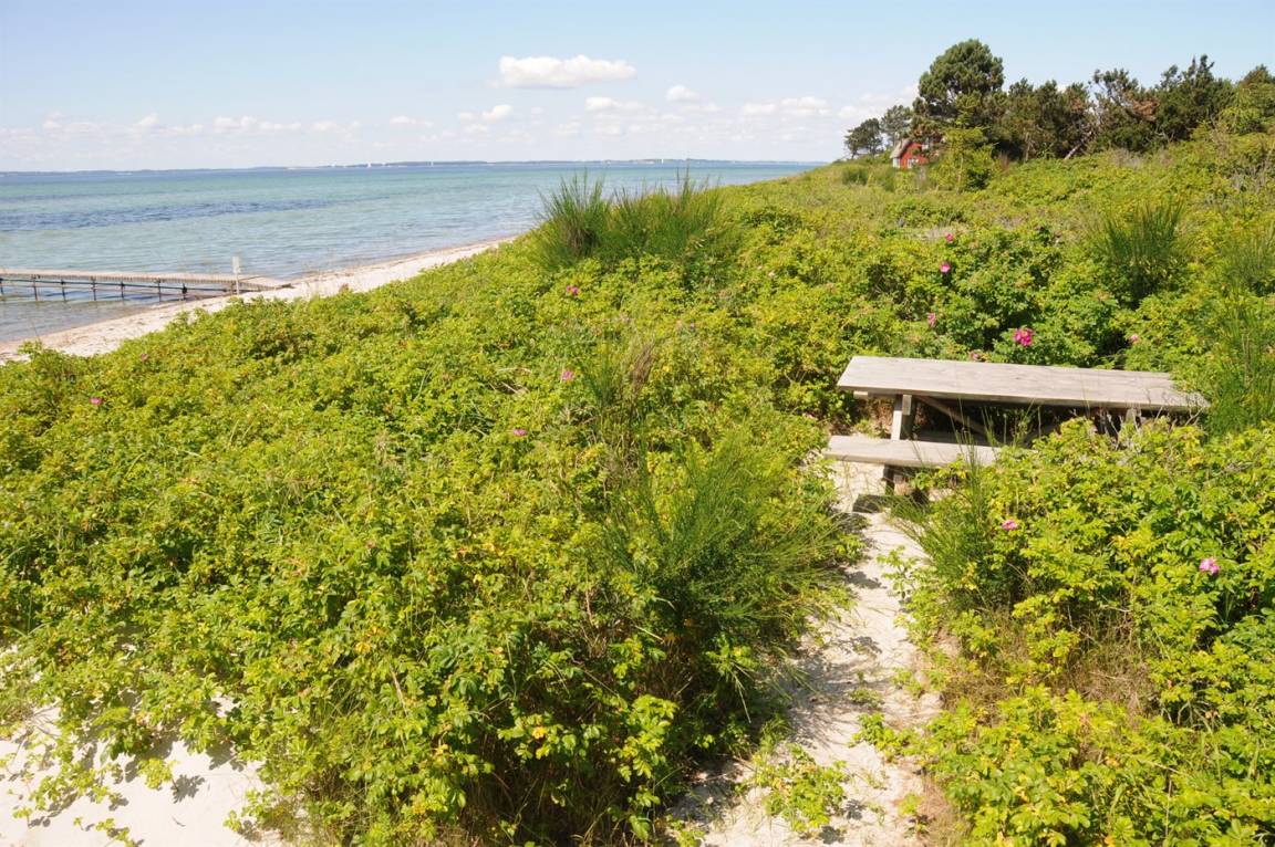 DraußenDie Ferienunterkunft liegt auf einem 1850 m² großen Naturgrundstück. Die Entfernung zum Meer beträgt 75 m. Es gibt einen Badesteg in der Nähe. Die nächste Einkaufsmöglichkeit liegt 500 m entfernt. Es steht ein 15 m² Terrassenareal zur Verfügung. Außerdem gibt es 8 m² überdachte Terrasse. Geräteraum. Schaukel.Wippe. Parkplatz auf dem Grundstück.