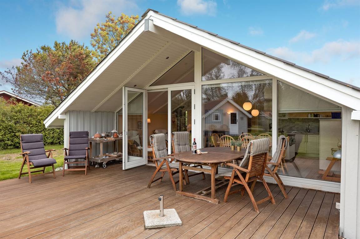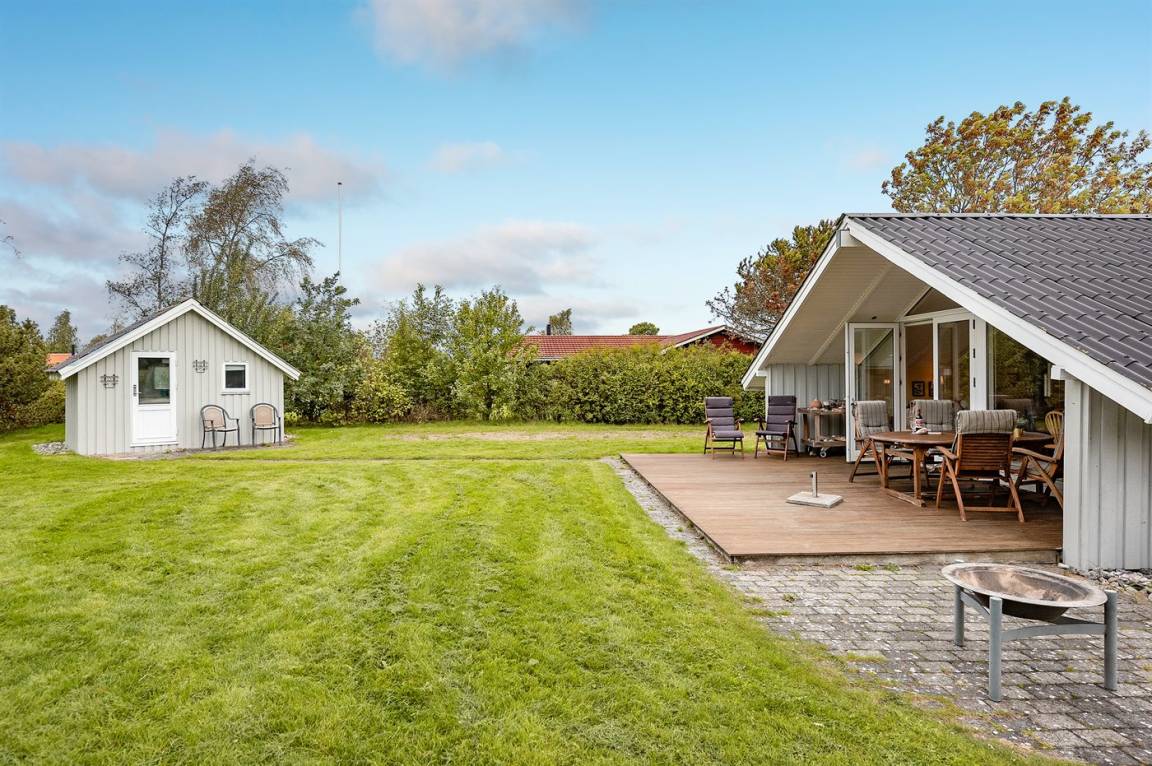 Dieses schöne Ferienhaus aus Holz liegt auf einem schönen Gartengrundstück mit einem großen Rasen, nur 300 m vom Wasser entfernt gelegen. Zum Ferienhaus gehören sowohl ein schönes, sowohl offenes als auch überdachtes Terrassenareal mit Gartenmöbeln.