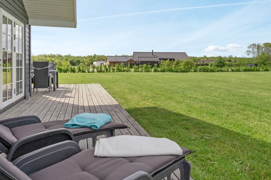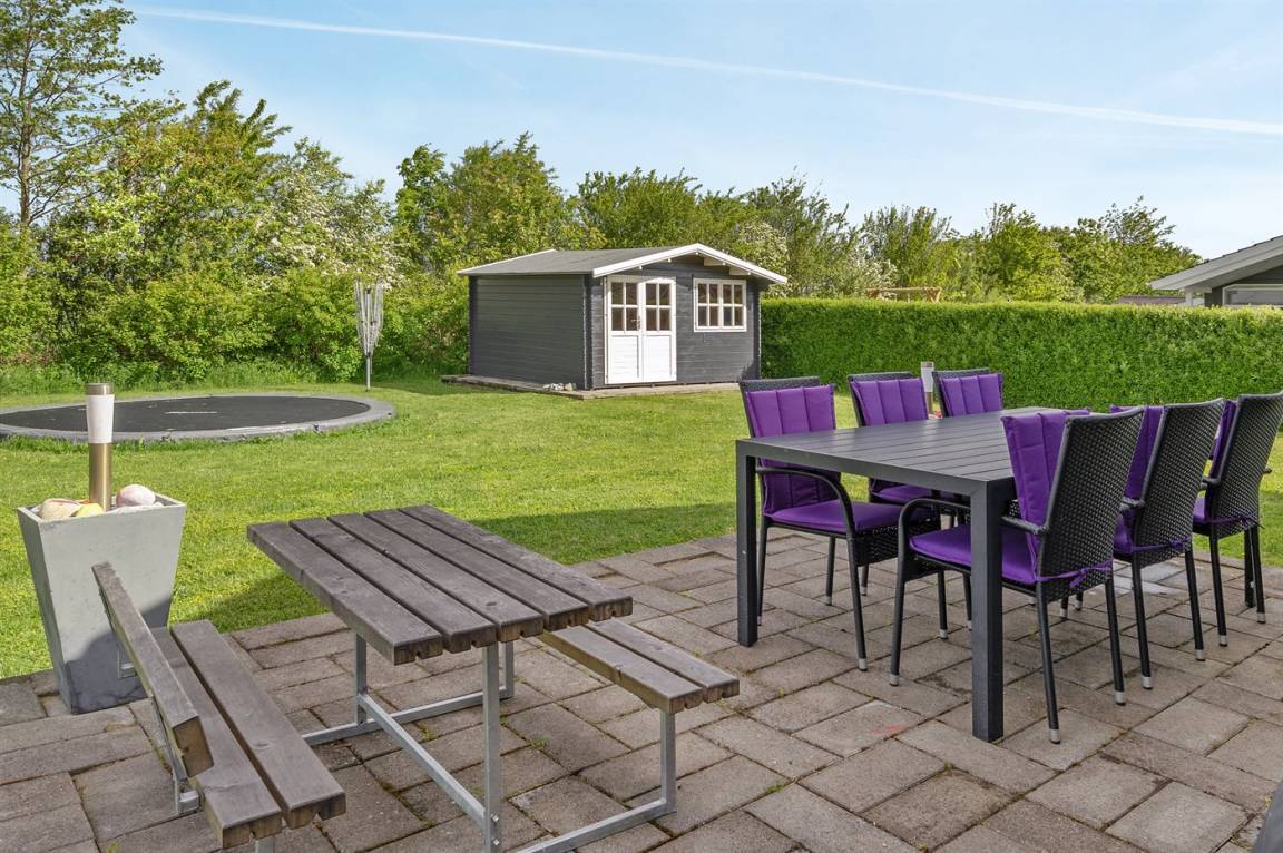 DraußenDie Ferienunterkunft liegt auf einem 1118 m² großen Naturgrundstück. Die Entfernung zum Meer beträgt 700 m. Die nächste Einkaufsmöglichkeit liegt 2000 m entfernt. Es steht ein 50 m² Terrassenareal zur Verfügung. Schaukel. Sandkasten. Trampolin. Es steht ein Grill zur Verfügung. Parkplatz auf dem Grundstück.