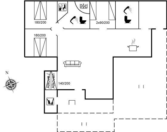 SchlafverhältnisseDie Schlafplätze verteilen sich auf 3 Schlafräume. 4 Schlafplätze in Doppelbetten. 2 Schlafplätze in Einzelbetten.2 Schlafplätze im Alkoven. 2 von diesen Schlafplätzen befinden sich in einem Alkoven im Wohnzimmer. Ferner steht ein Kinderbett zur Verfügung.