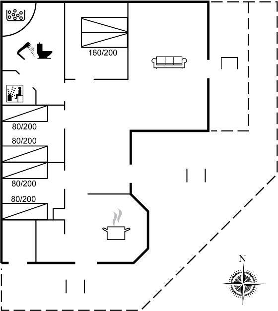 SchlafverhältnisseDie Schlafplätze verteilen sich auf 3 Schlafräume. 2 Schlafplätze in einem Doppelbett. 4 Schlafplätze in Einzelbetten. Ferner steht ein Kinderbett zur Verfügung.