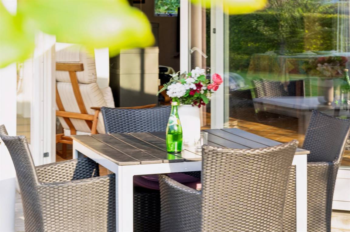 DraußenDie Ferienunterkunft liegt auf einem 932 m² großen Gartengrundstück. Die Entfernung zum Meer beträgt 100 m. Die nächste Einkaufsmöglichkeit liegt 2000 m entfernt. In einem Abstand von 12000 m gibt es einen Golfplatz. Es steht ein offenes Terrassenareal zur Verfügung. Außerdem gibt es überdachte Terrasse. Es steht ein Grill zur Verfügung. Parkplatz auf dem Grundstück.