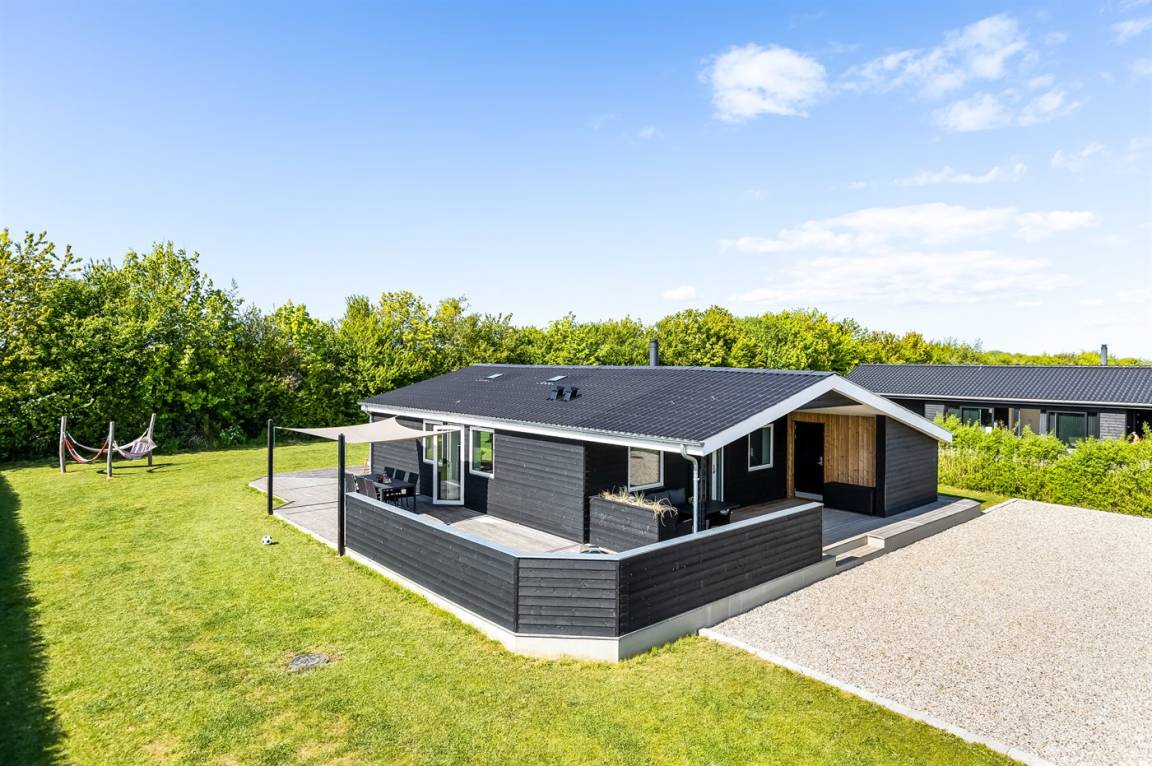 Neues Ferienhaus, fertiggestellt im Jahr 2025 und mit hochwertigen Materialien gebaut. Das Ferienhaus liegt in Skovmose, ganz in der Nähe eines der schönsten Badestrände.