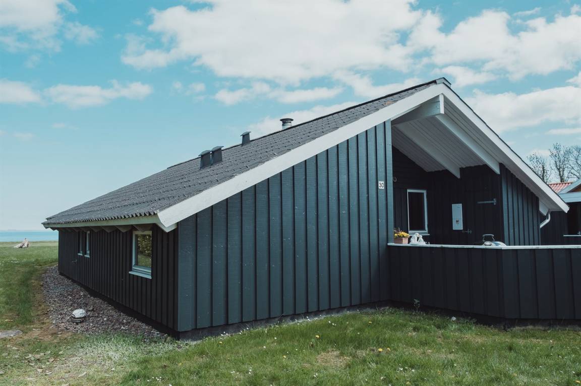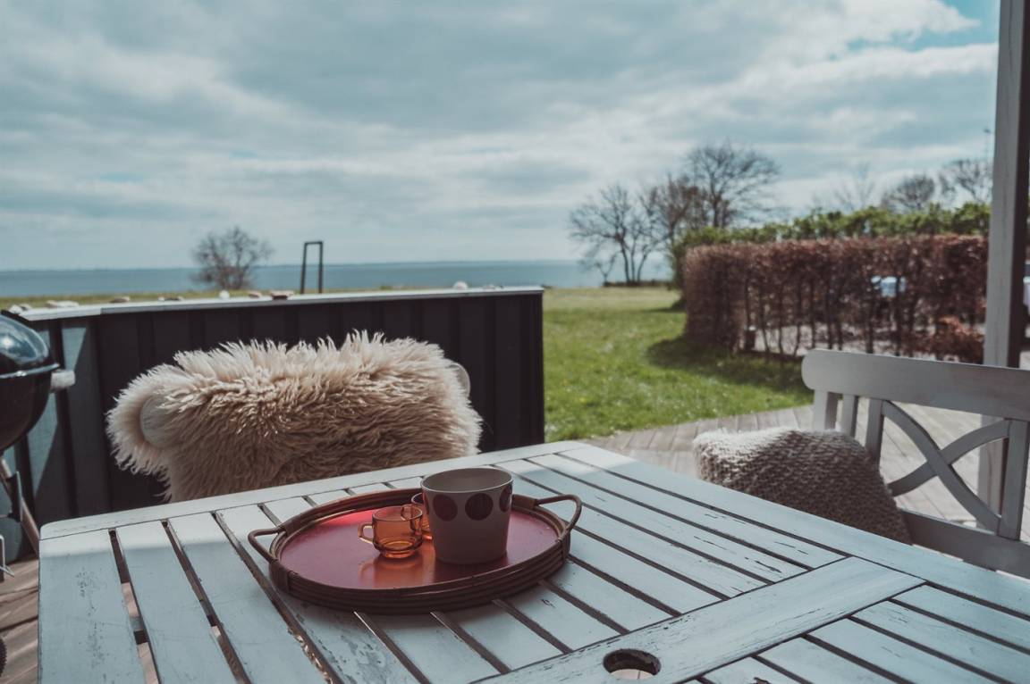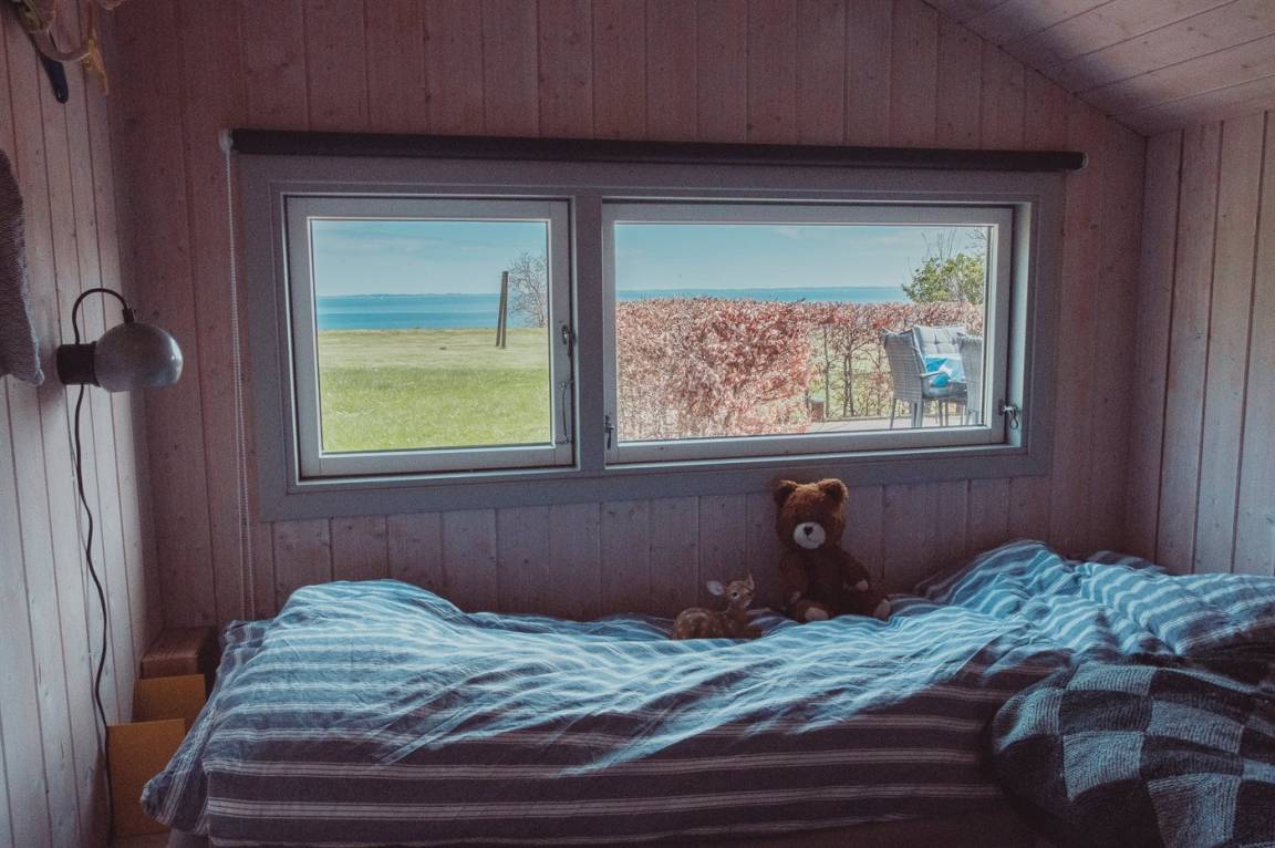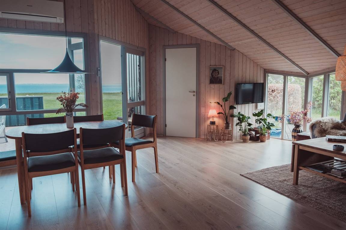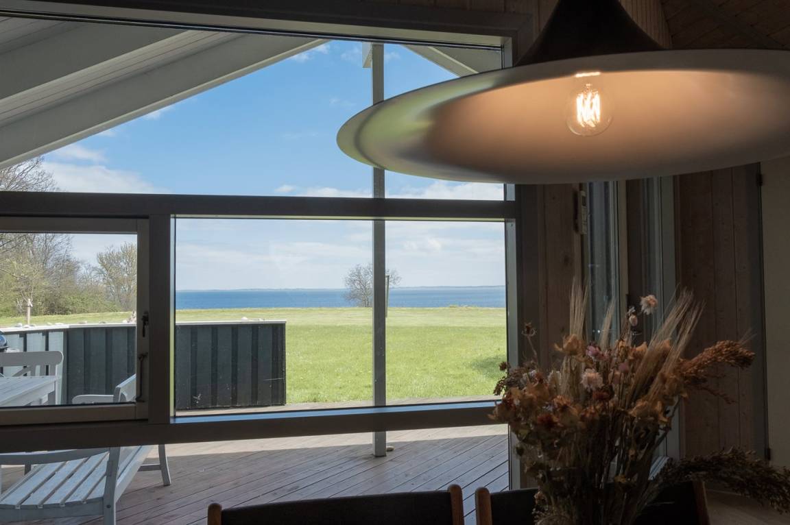 Ein Ferienhaus in der ersten Reihe - 100 Meter vom Wasser entfernt und mit direktem Blick auf den Kleinen Belt mit der Insel Ærø im Hintegrund.