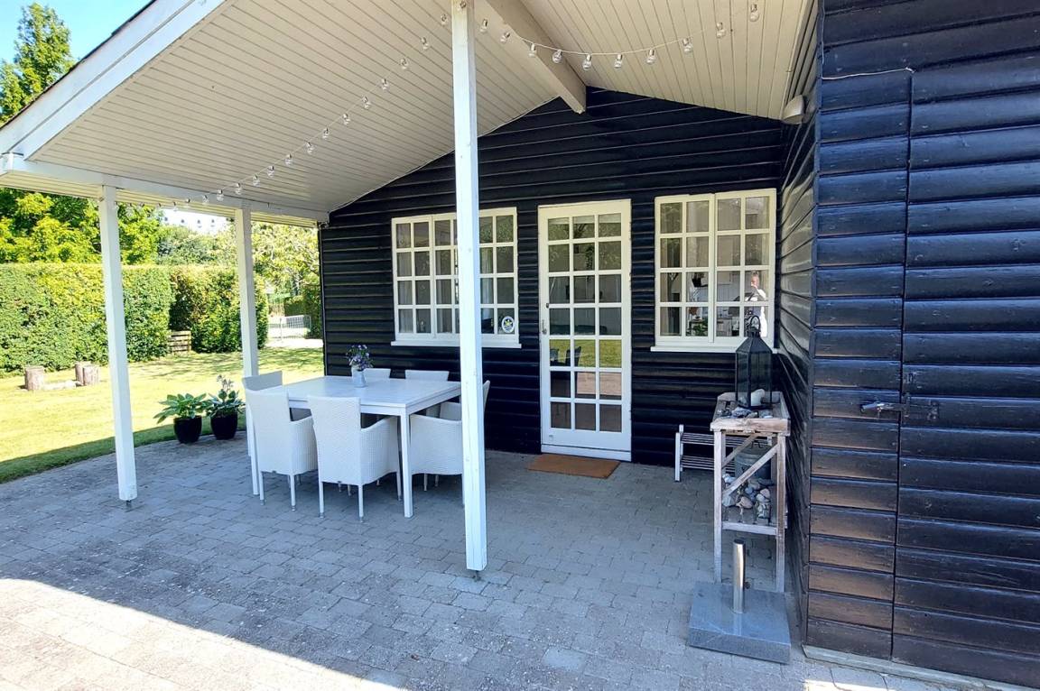 DraußenDie Ferienunterkunft liegt auf einem 800 m² großen Das Grundstück ist eingezäunt. Die Entfernung zum Meer beträgt 680 m. Die nächste Einkaufsmöglichkeit liegt 500 m entfernt. Es steht ein 24 m² Terrassenareal zur Verfügung. Außerdem gibt es 10 m² überdachte Terrasse. Schaukel. Sandkasten. Es steht ein Carport zur Verfügung. Parkplatz auf dem Grundstück.