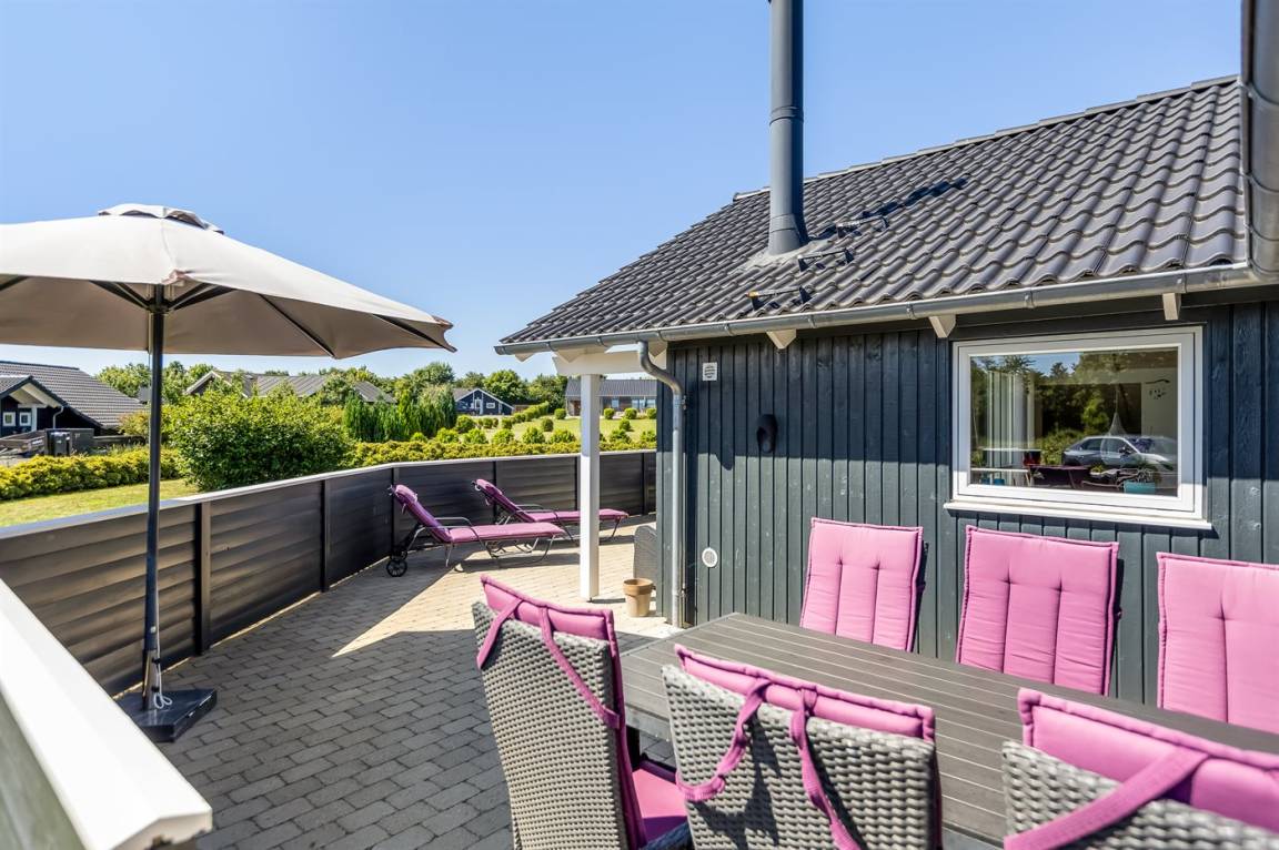 DraußenDie Ferienunterkunft liegt auf einem 1050 m² großen Gartengrundstück. Die Entfernung zum Meer beträgt 700 m. Die nächste Einkaufsmöglichkeit liegt 2000 m entfernt. In einem Abstand von 14000 m gibt es einen Golfplatz. Es steht ein offenes Terrassenareal zur Verfügung. Außerdem gibt es überdachte Terrasse. Schaukel. Sandkasten. Spielturm. Es steht ein Grill zur Verfügung. Es ist ein Ladestecker für Elektroautos installiert. Ladestecker Typ 2. Mit einer Ladeleistung von 11 kW. Parkplatz auf dem Grundstück.