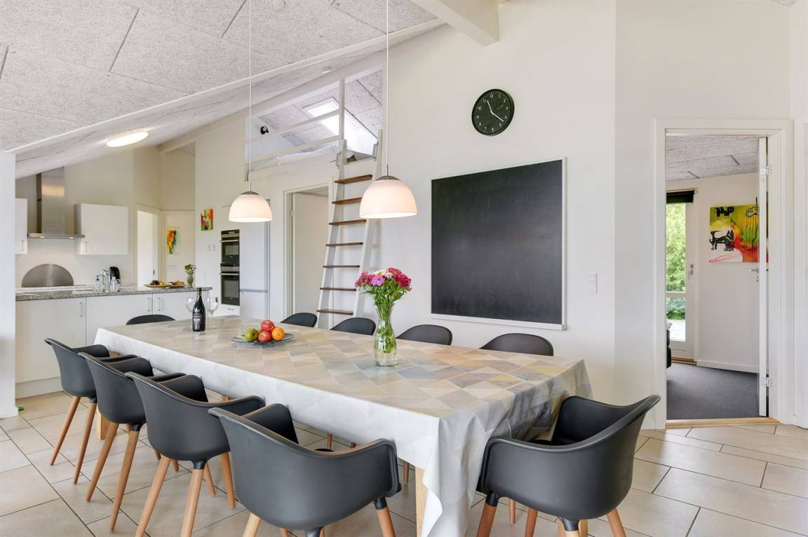 EinrichtungDas Ferienhaus eignet sich für 10 Personen. Die Ferienunterkunft hat eine Wohnfläche von 128 m² und wurde 2011 gebaut. Haustiere dürfen nicht mitgebracht werden. Die Ferienunterkunft ist mit energiesparender Wärmepumpe ausgestattet. Es gibt Erdwärme. Fußbodenheizung in allen Räumen. Die Ferienunterkunft ist mit Waschmaschine ausgestattet. Wäschetrockner. Tiefkühlmöglichkeit mit 60 Liter Nutzinhalt. Es gibt außerdem einen Kaminofen. Für die jüngsten Feriengäste ist 1 Kinderhochstuhl vorhanden.
